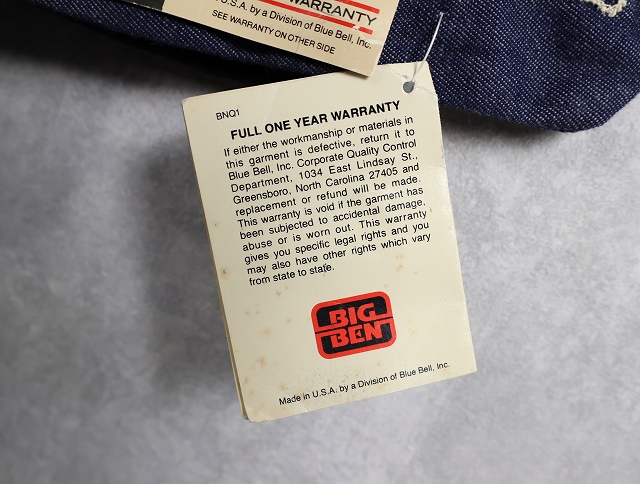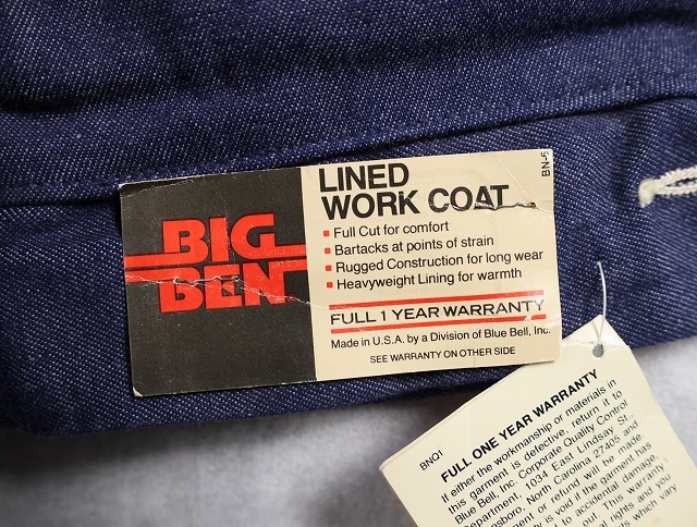 70's BIGBEN USA製 ブランケットライナー デニムカバーオール DEADSTOCK [159178]