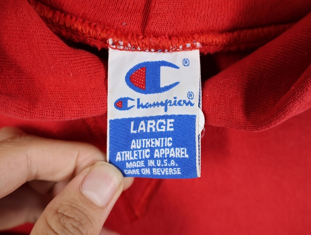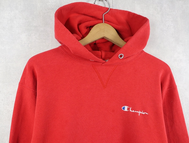 90's Champion 青刺繍タグ後期 USA製 ロゴ刺繍 前V スウェットフーディ L [159179]