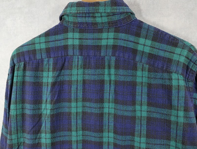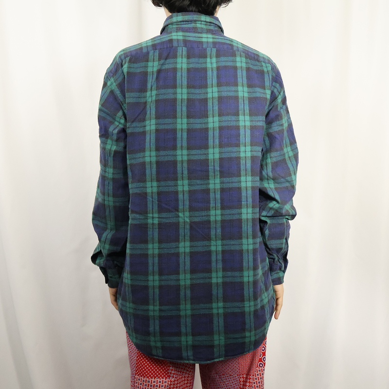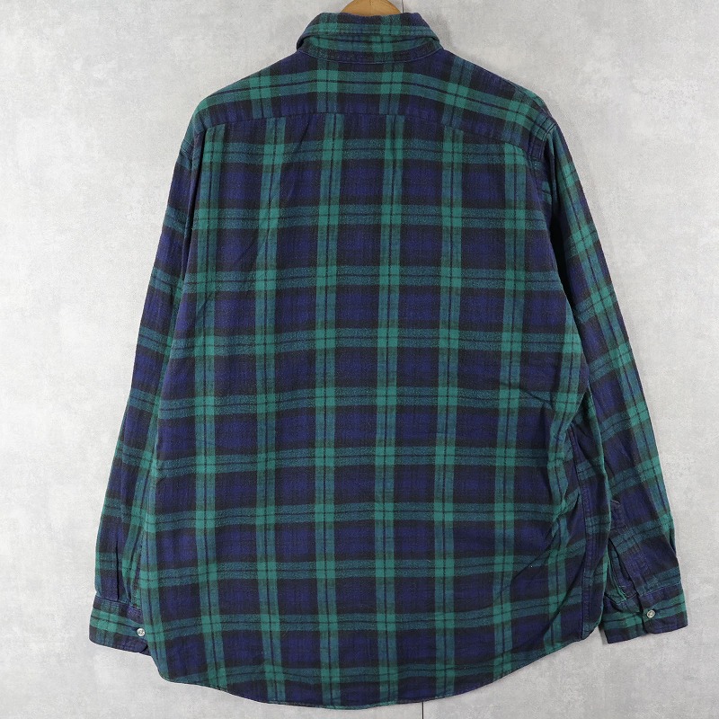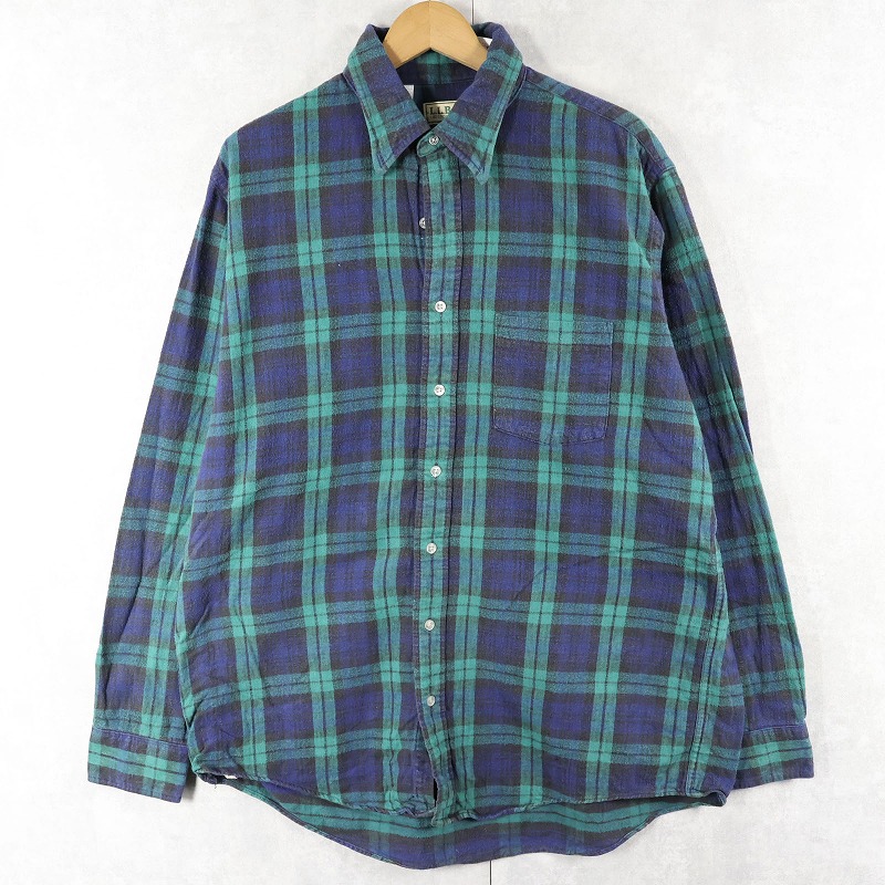 80〜90's L.L.Bean USA製 ブラックウォッチチェック柄 ライトネルシャツ L [159188]