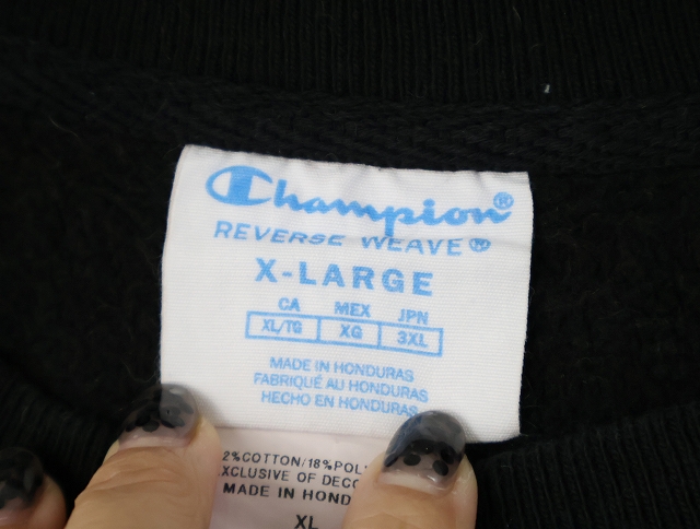 Champion REVERSE WEAVE 目無し スウェット BLACK XL [159205]