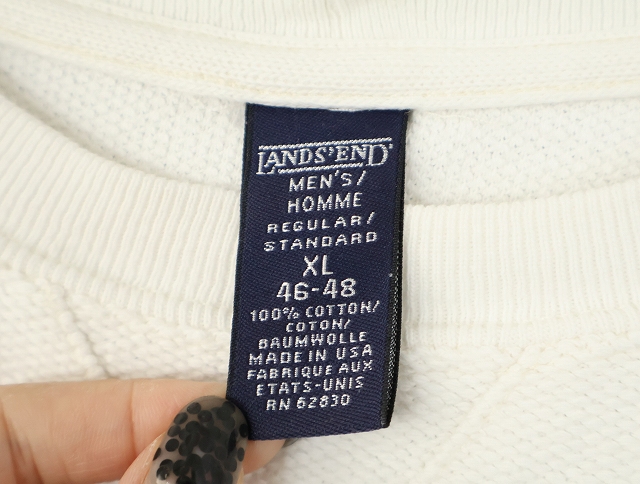 90's LANDS' END USA製 前V 無地 鹿の子スウェット XL [159219]