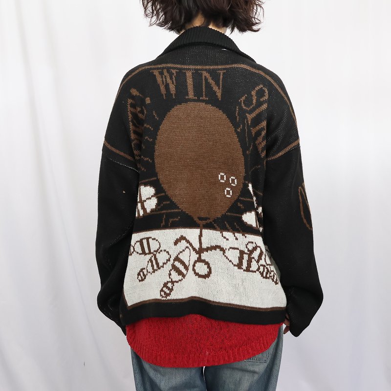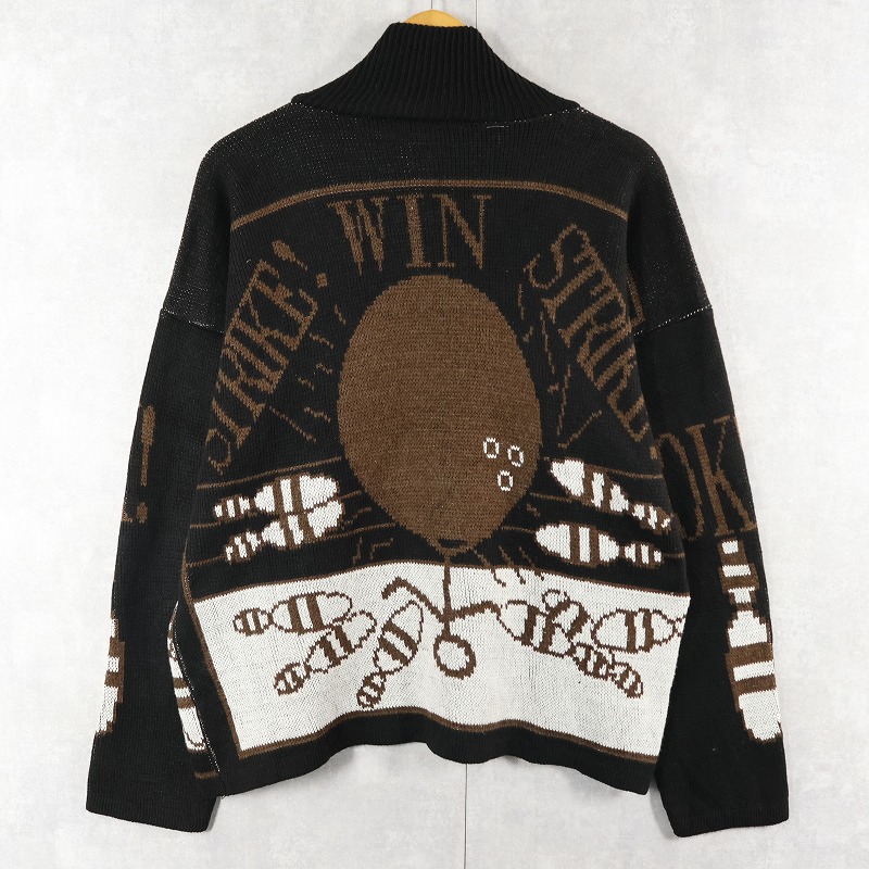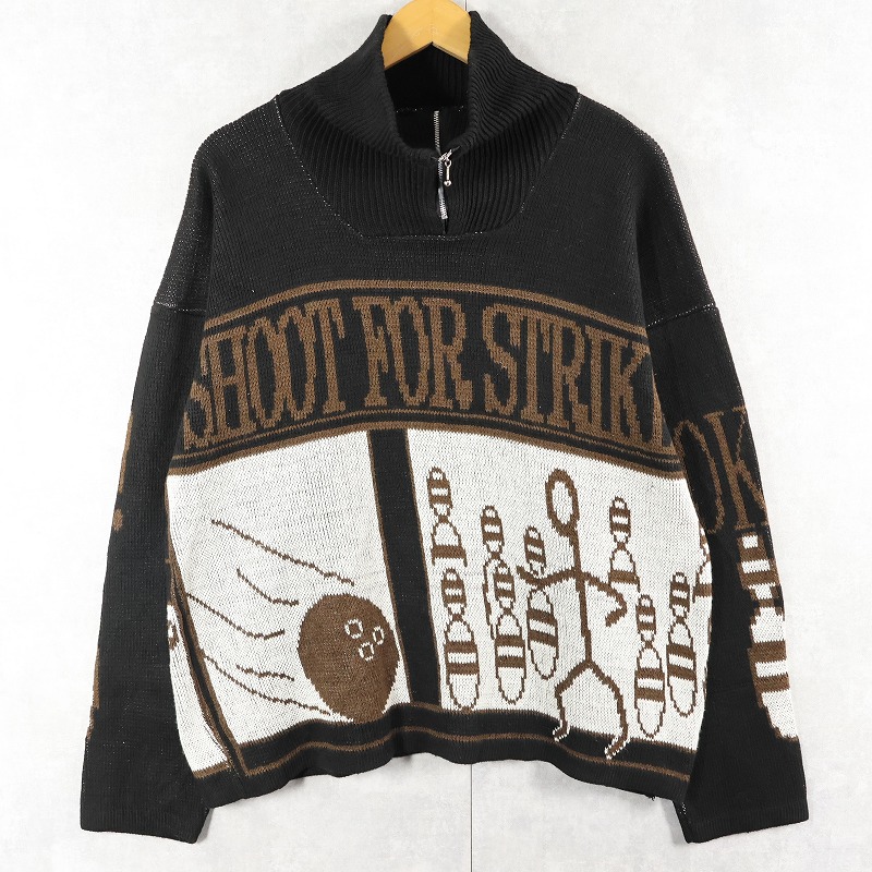 "SHOOT FOR STRIKE!" ボーリング柄 ハーフジップスキーニットセーター BLACK [159264]