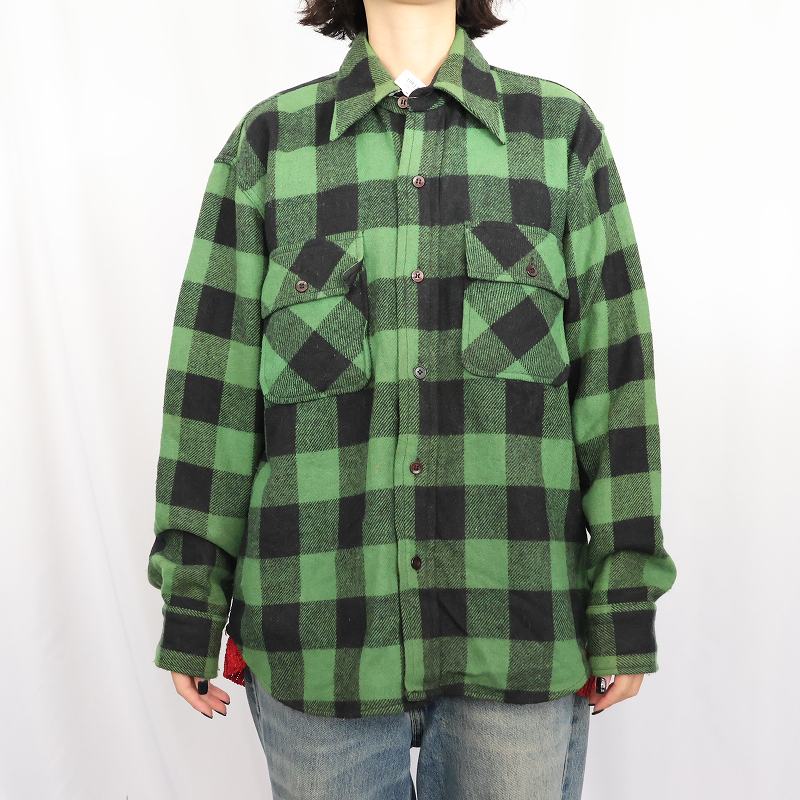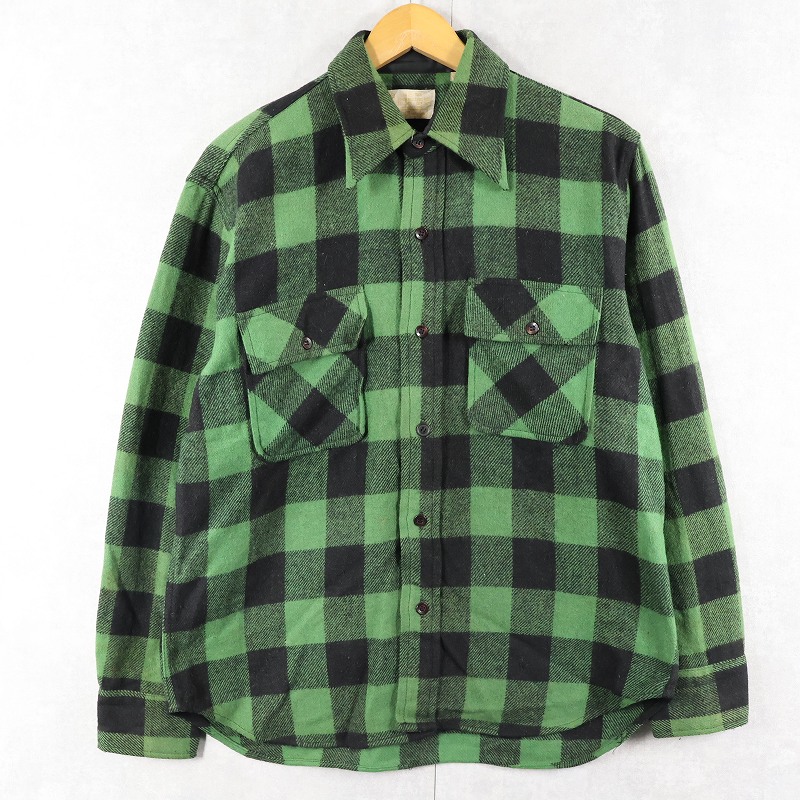 70's Sears KINGS ROAD バッファローチェック柄 ウールシャツ M [159269]