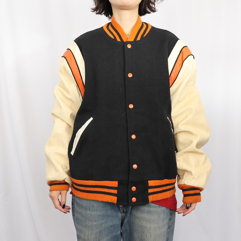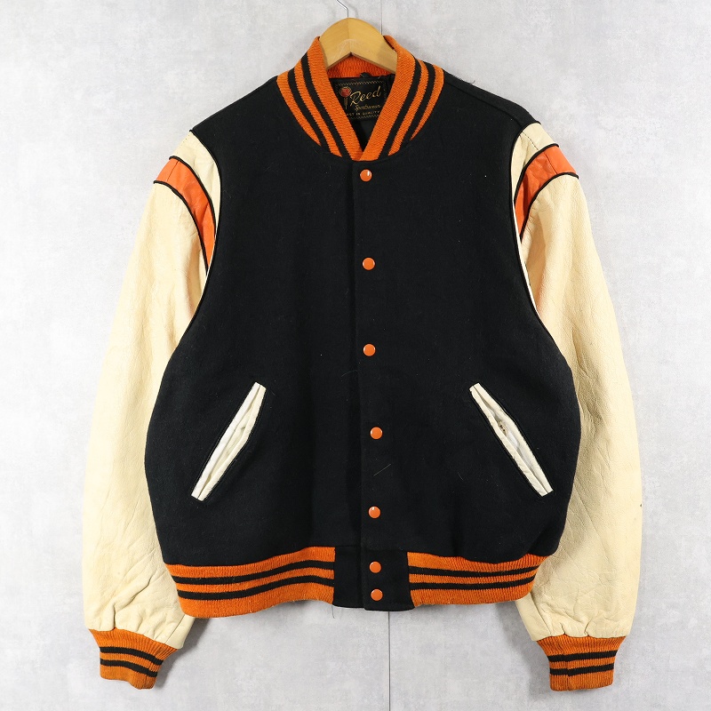 80〜90's Reed レザー×メルトンウール スタジャン BLACK SIZE48 [159283]