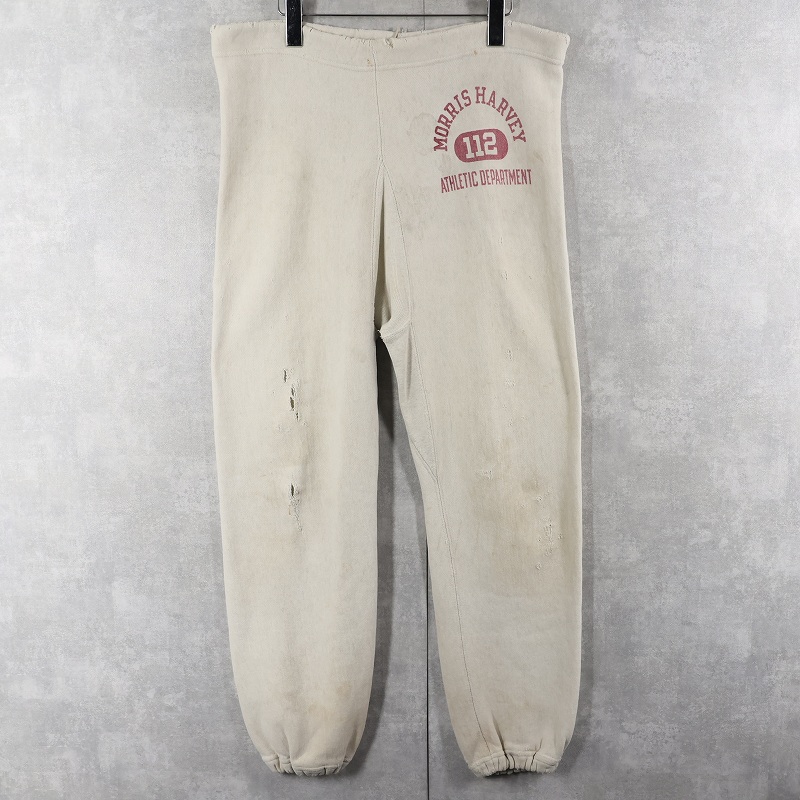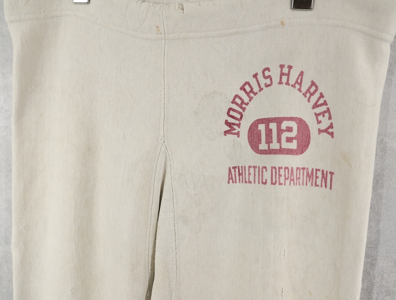 70's "MORRIS HARVEY 112 ATHLETIC DEPARTMENT" 染み込みプリントスウェットパンツ [159292]
