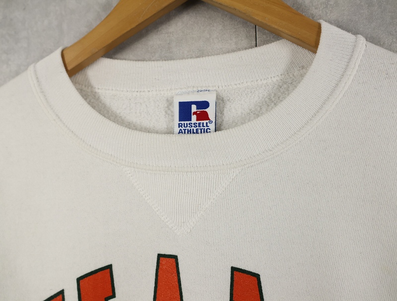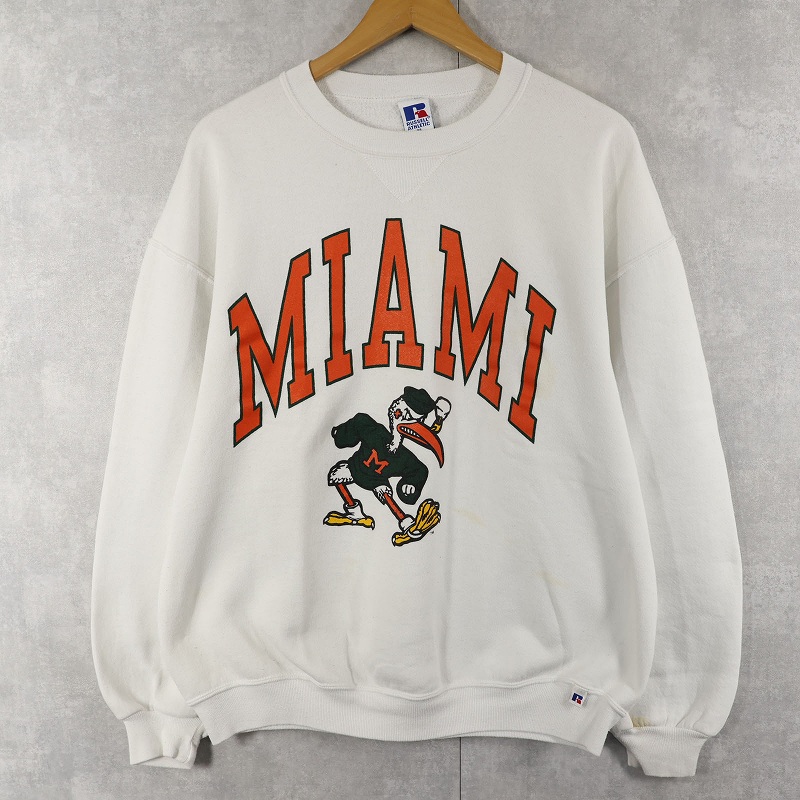 90's RUSSELL ATHLETIC USA製 "MIAMI" 前V プリントスウェット XL [159308]