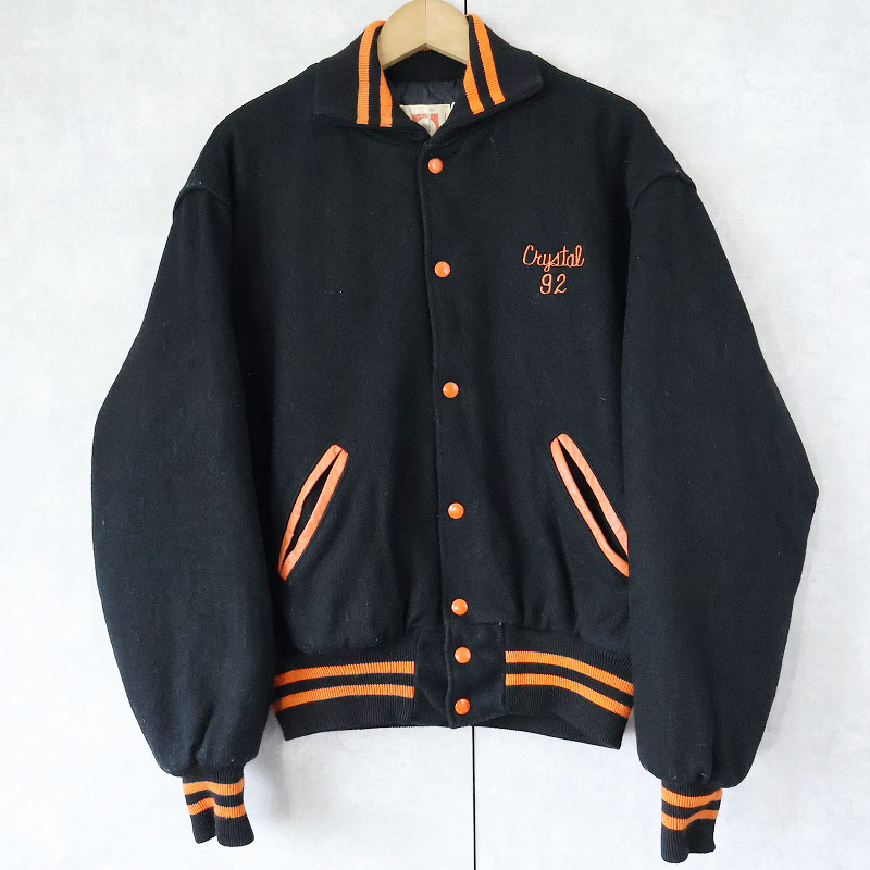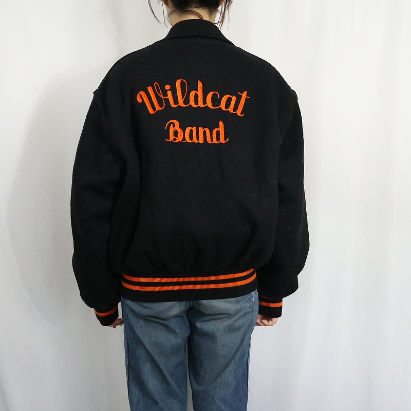 80〜90's Palombo Inc. USA製 "Wildcat Band" チェーン刺繍 キルティングライナー ウールスタジャン BLACK L [159316]
