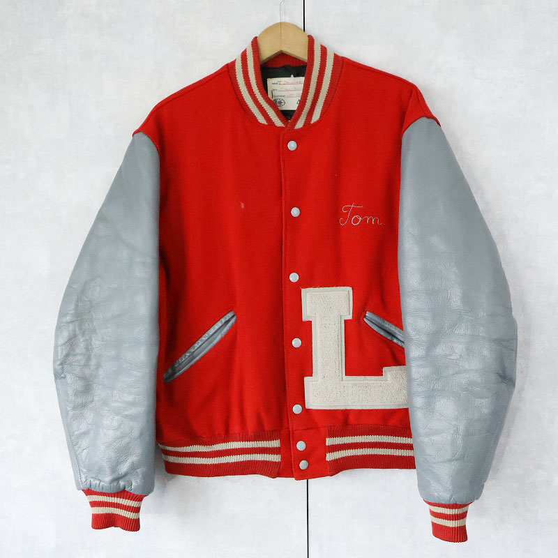 70〜80's DeLong USA製 "Manitowoc Lutheran High" チェーン刺繍 パッチ付き キルティングライナー ウール×レザースタジャン [159320]