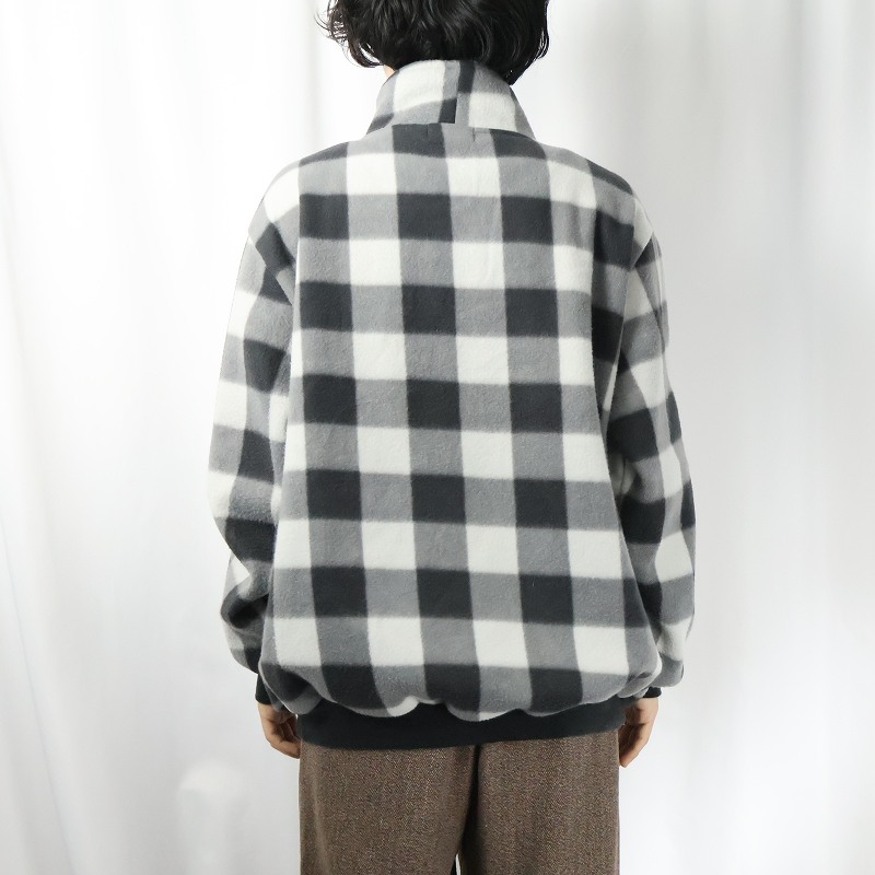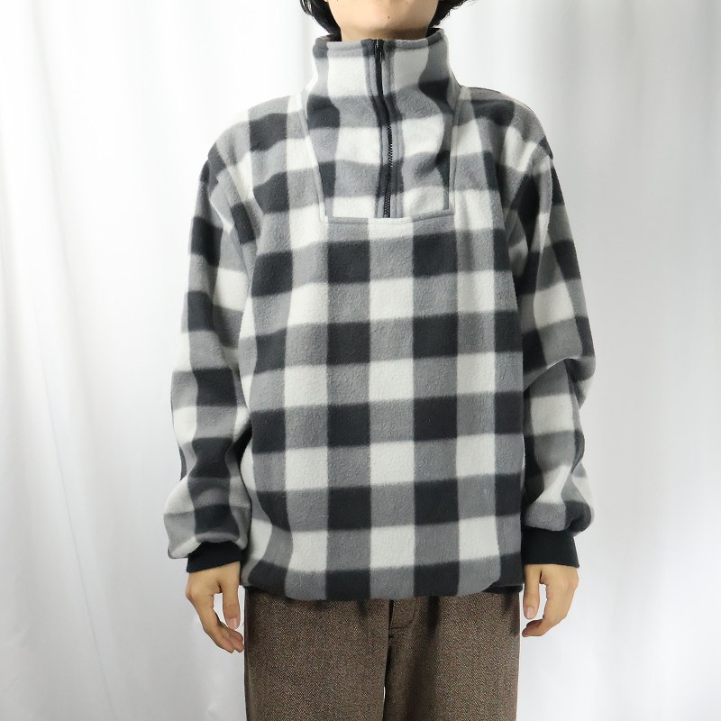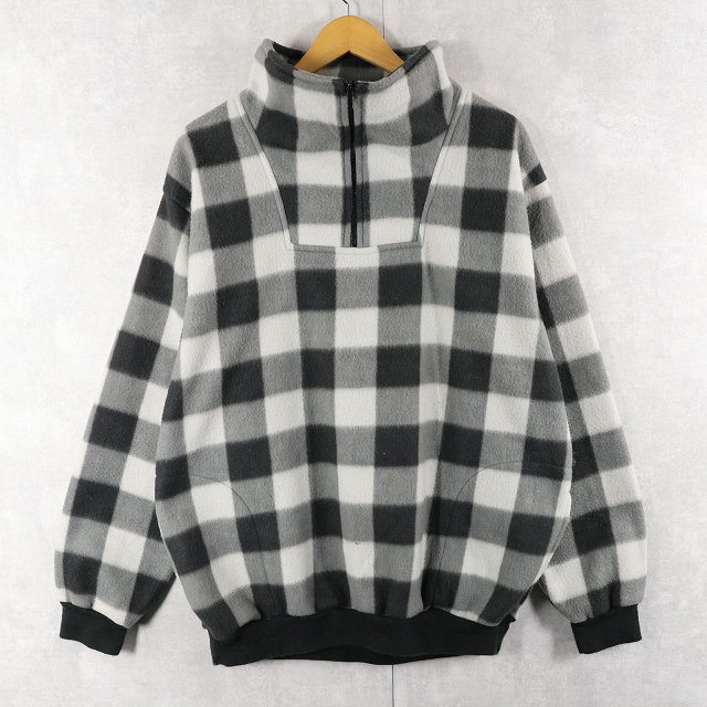 90's BOSS チェック柄 ハープジップ フリースジャケット XL [159324]