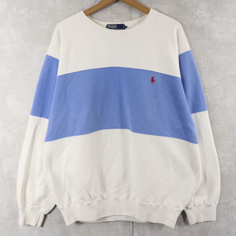 90's POLO Ralph Lauren ロゴ刺繍 切り替えデザイン ラグランスウェット L [159356]