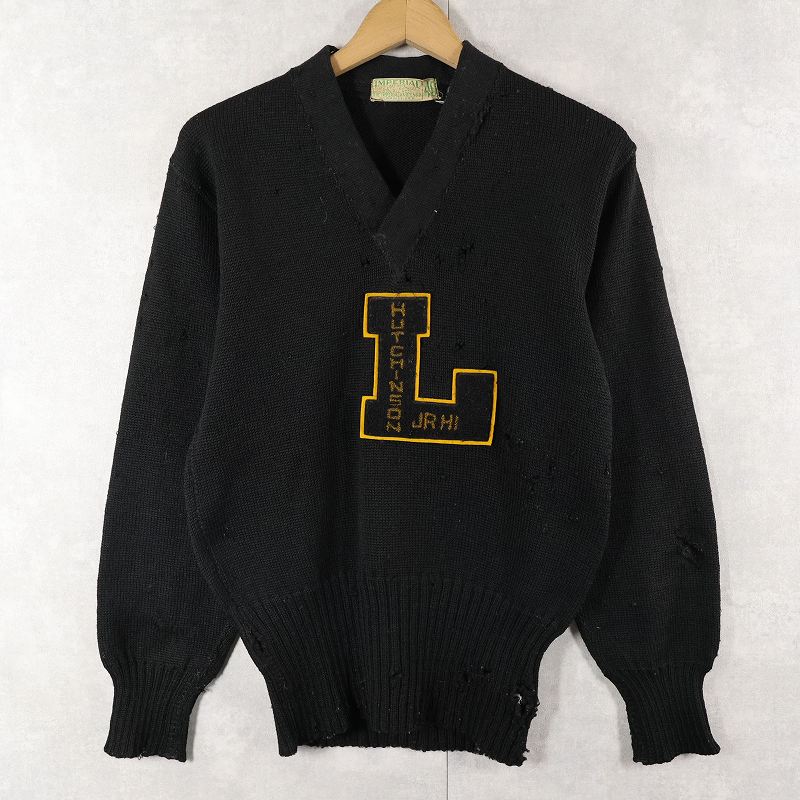 〜50's IMPERIAL ウール レタードニットセーター BLACK SIZE40 [159360]