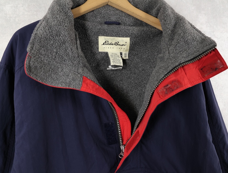 90's〜 Eddie Bauer フリースライナー ハーフジップナイロンジャケット NAVY S [159411]