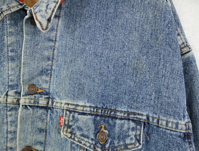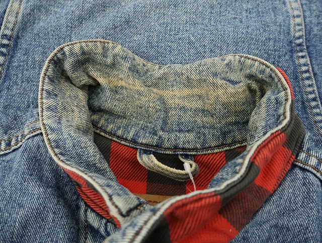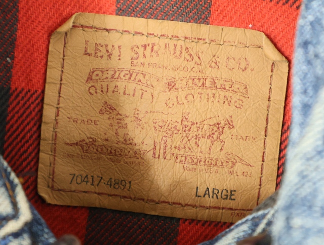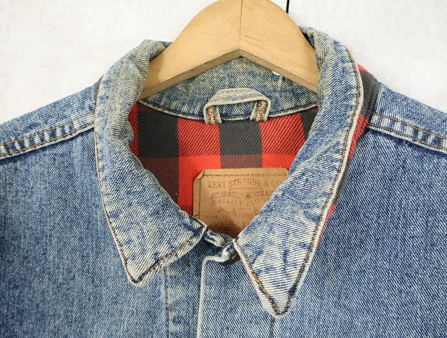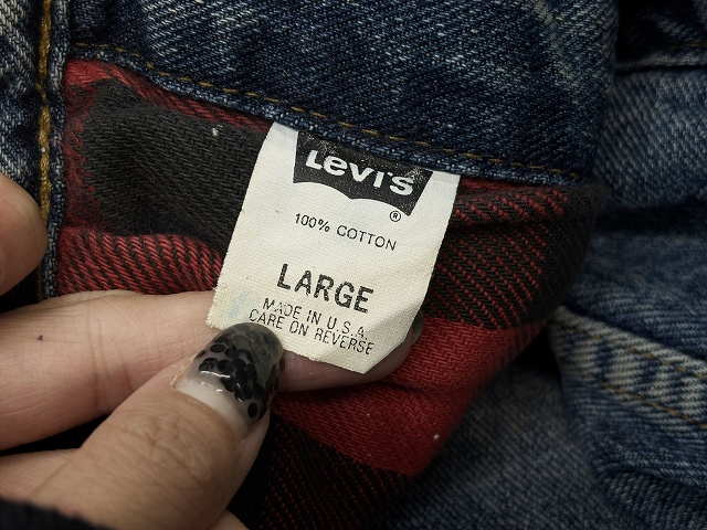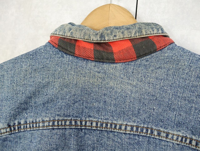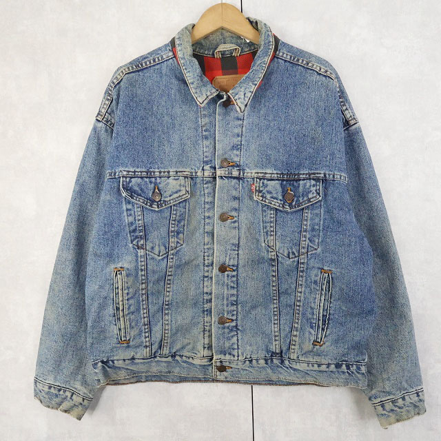 90's Levi's 70417 USA製 チェック柄ライナー デニムジャケット L [159459]
