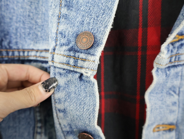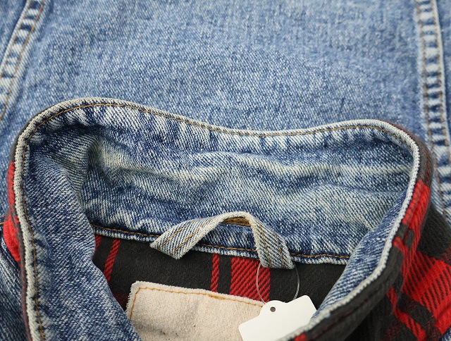 90's Levi's 70427 USA製 チェック柄ライナー デニムジャケット [159463]