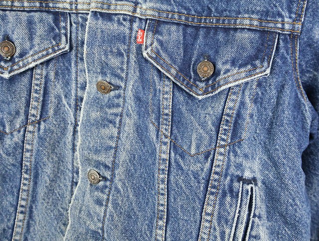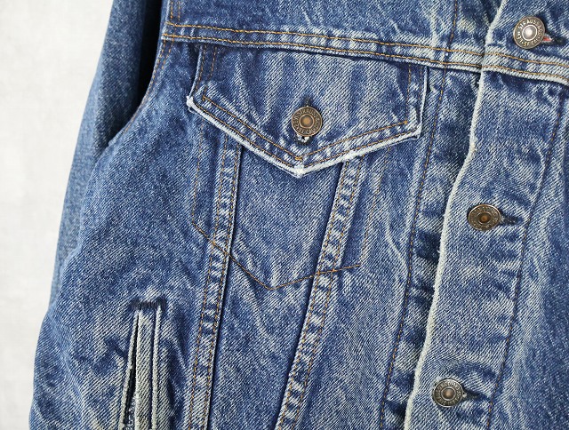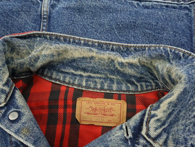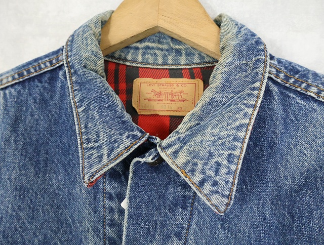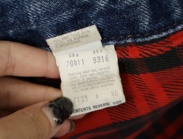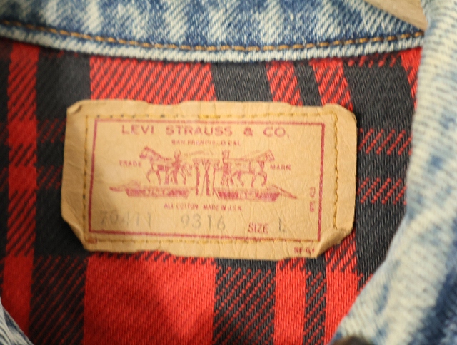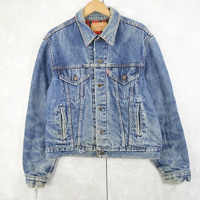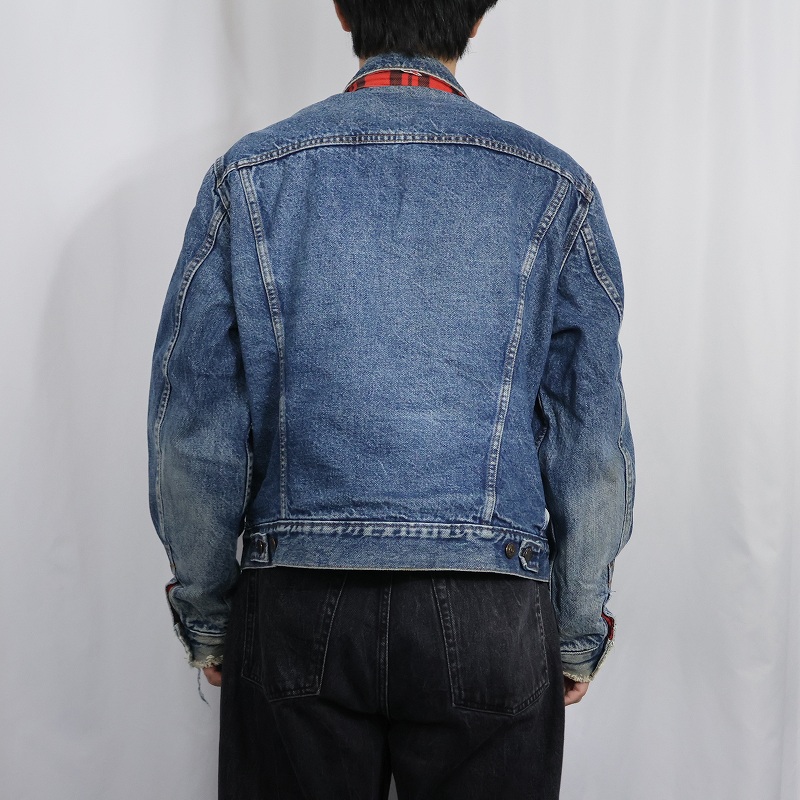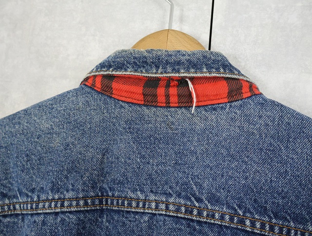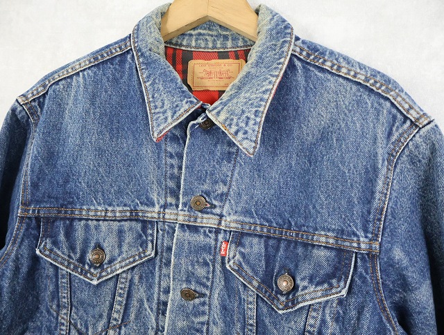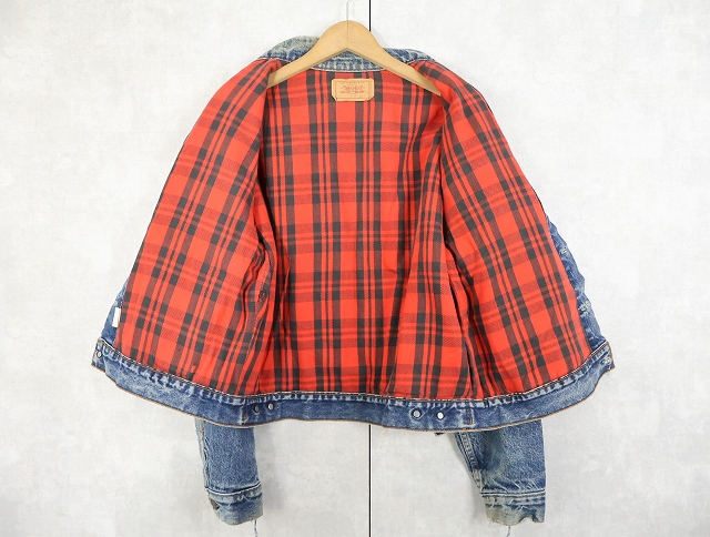 80's Levi's 70411 USA製 チェック柄ライナー デニムジャケット L [159464]