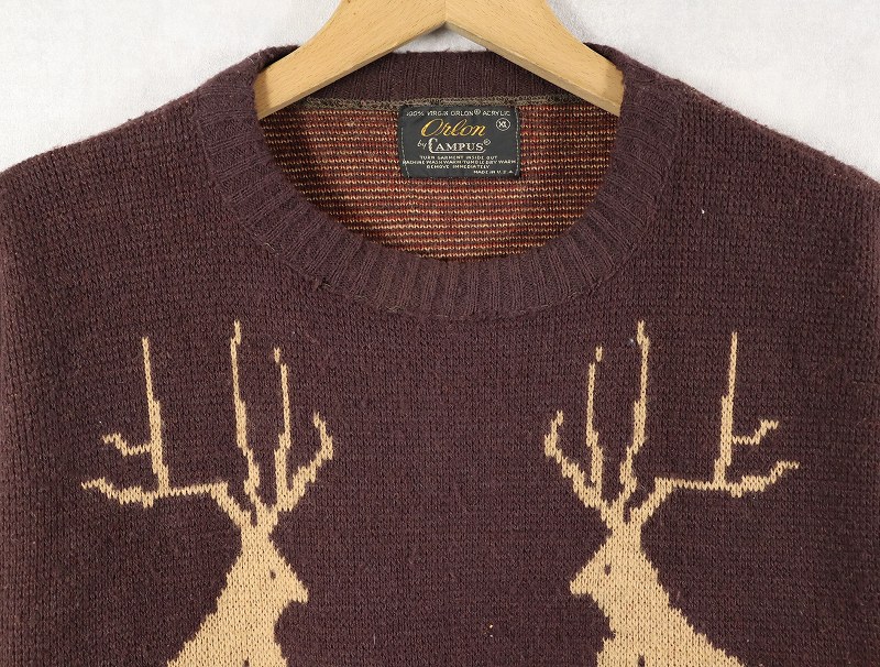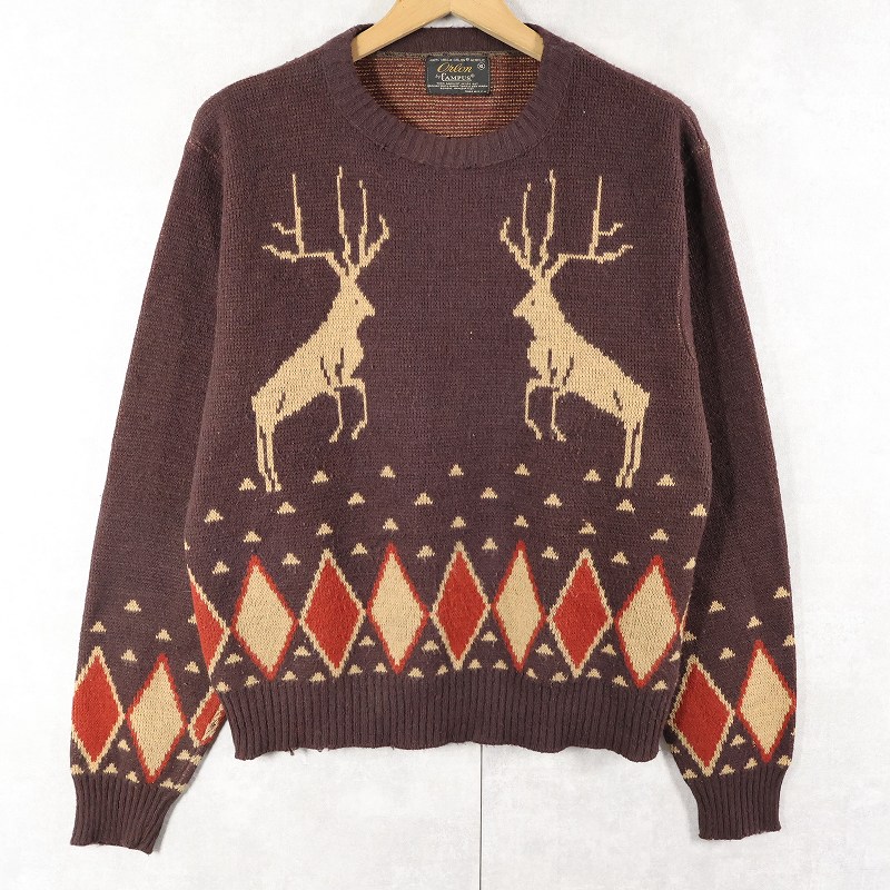 60〜70's Orlon by CAMPUS USA製 トナカイ柄 ジャガードアクリルニットセーター XL [159478]