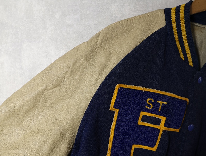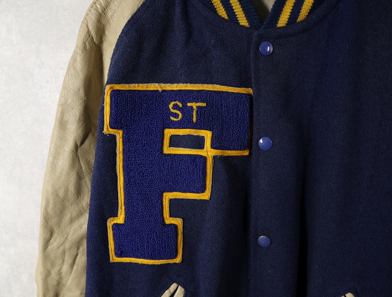 70〜80's パッチ付き ウール×レザー スタジャン [159490]