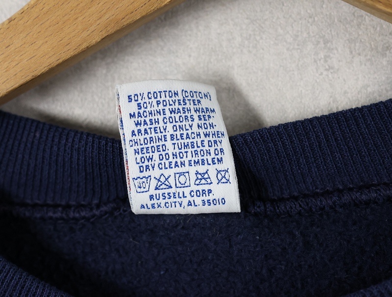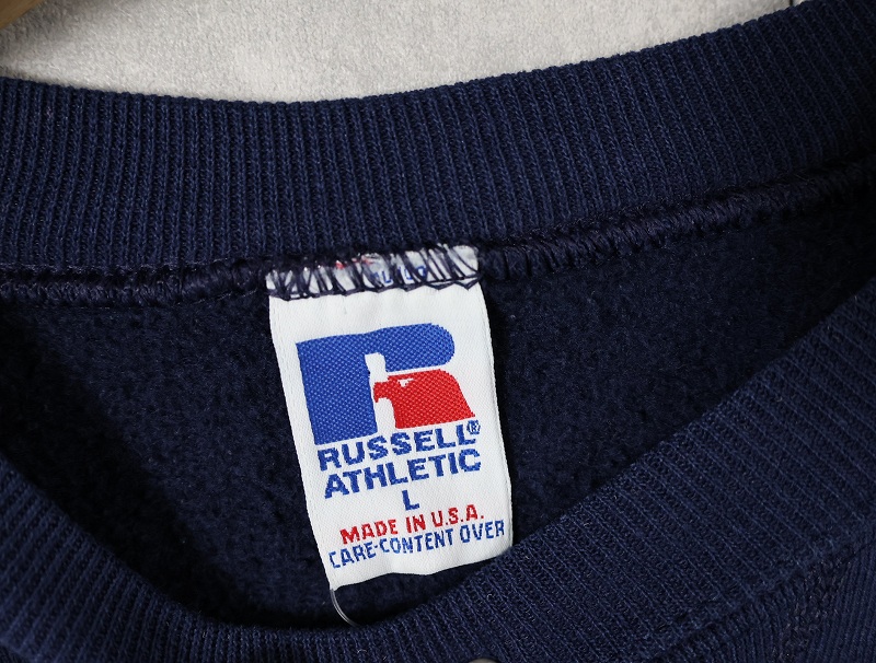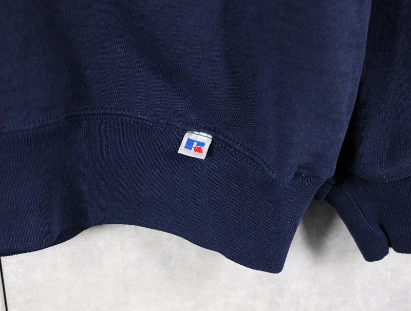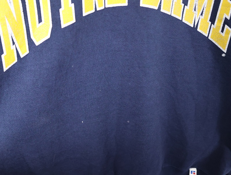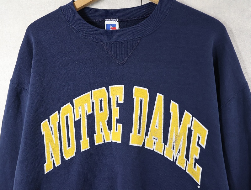 90's RUSSELL ATHLETIC USA製 "NOTRE DAME" 前V プリントスウェット NAVY L [159499]