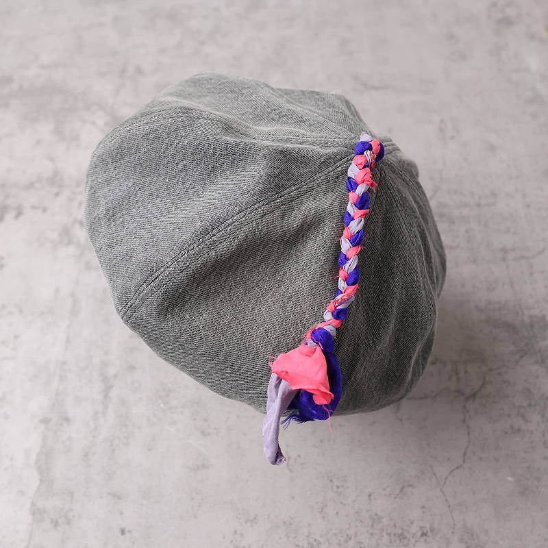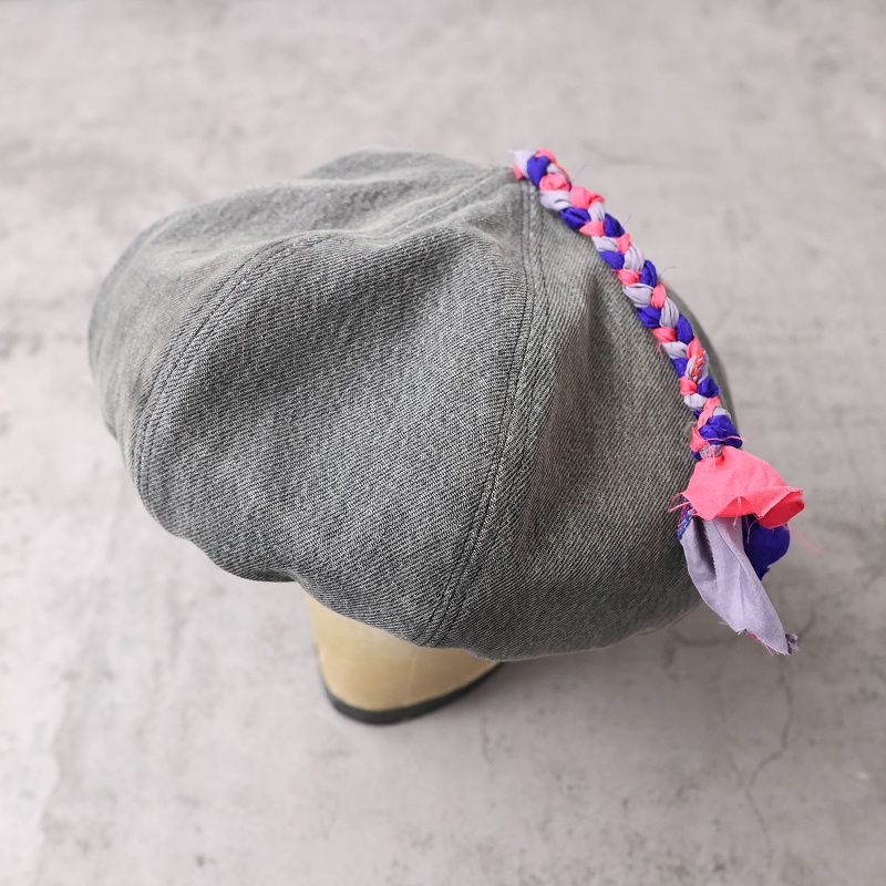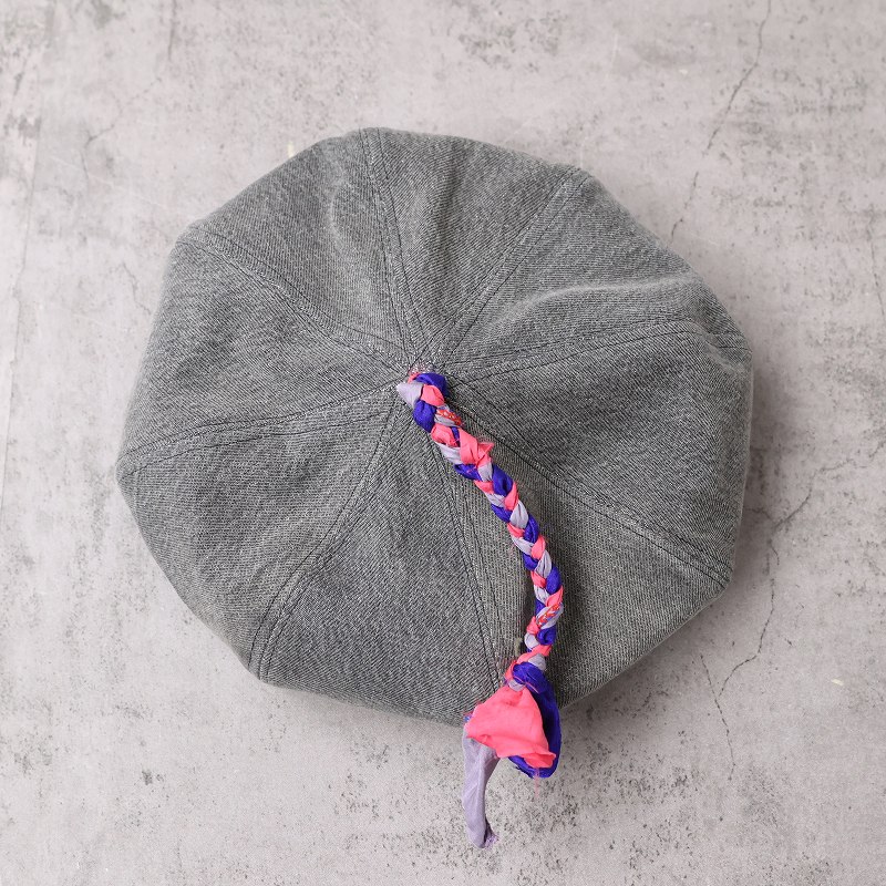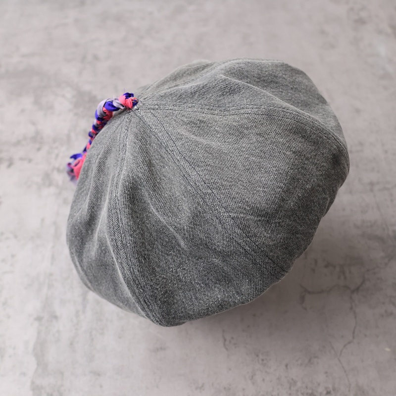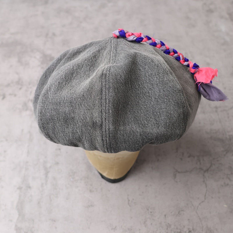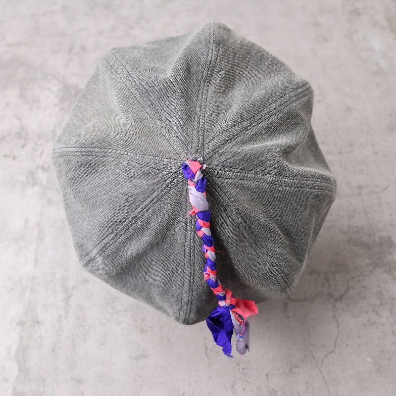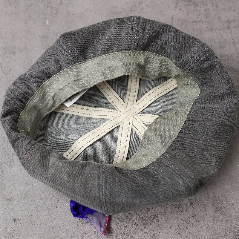 little original "black denim patch work beret silk tassel" Remake beret [159535]