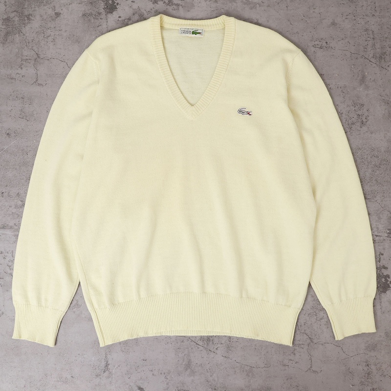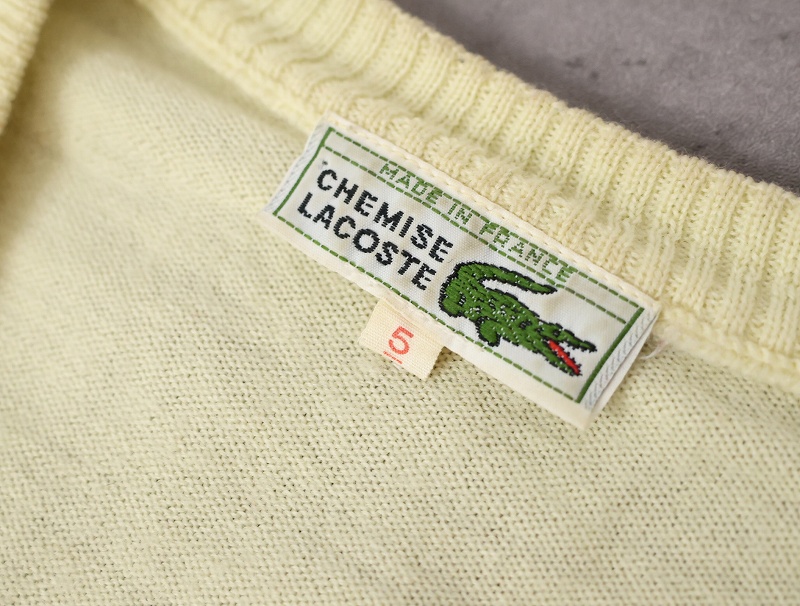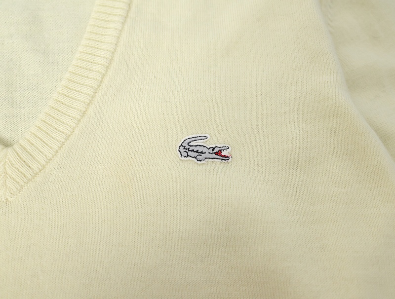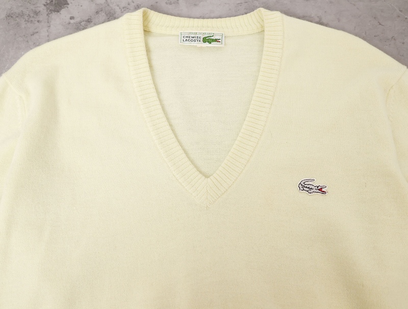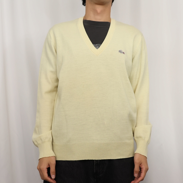 70's CHEMISE LACOSTE FRANCE製 ロゴ刺繍 Vネック ウールニットセーター SIZE5 [159549]