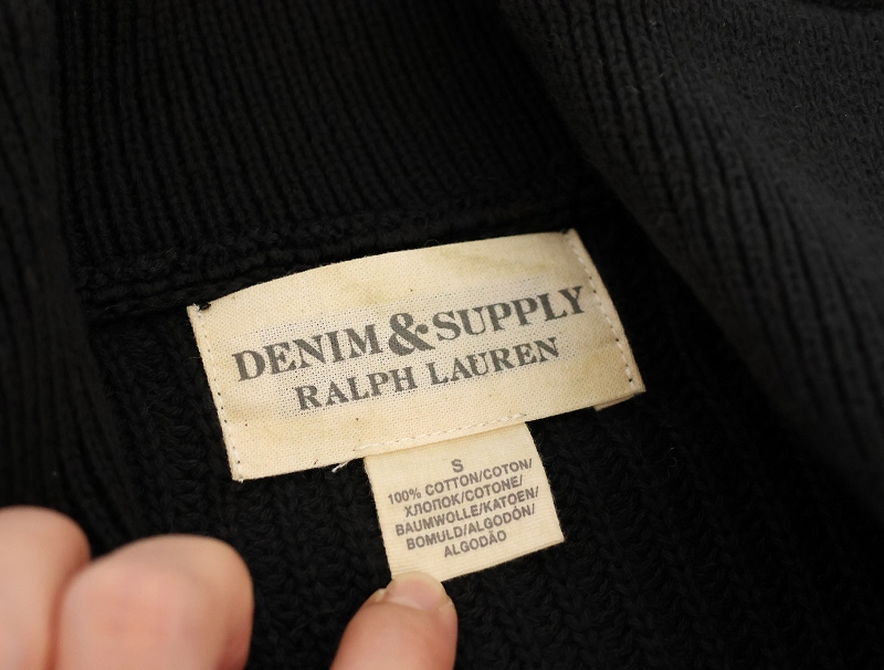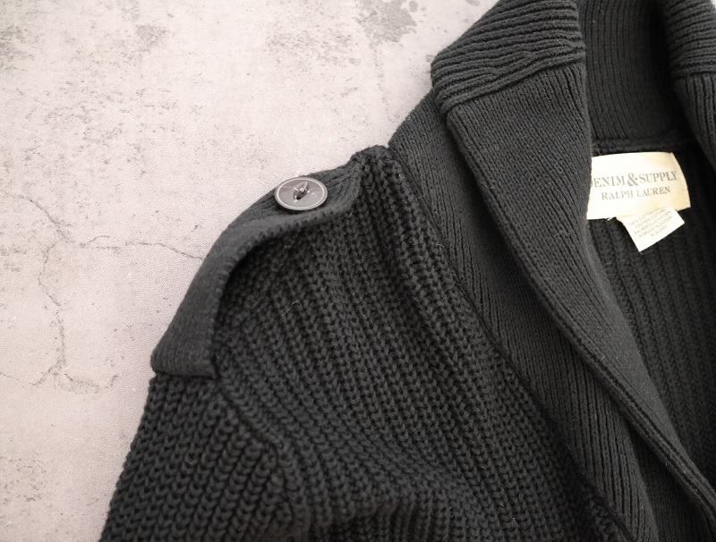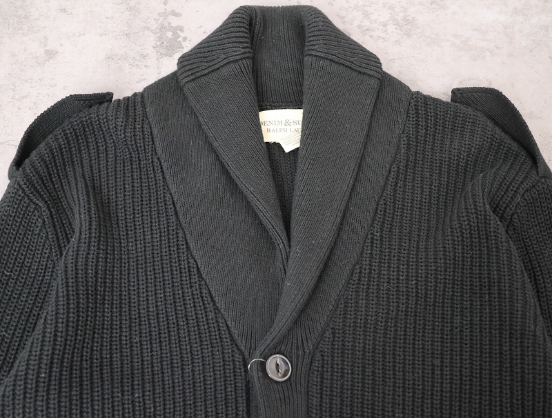 Ralph Lauren DENIM&SUPPLY エポレット付き ショールカラー コットンニットカーディガン BLACK S [159558]