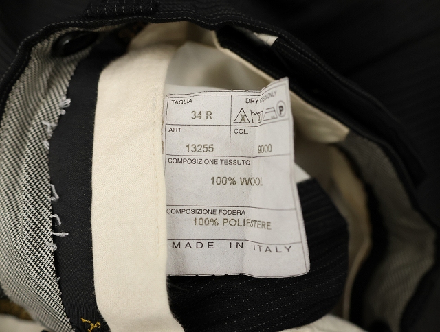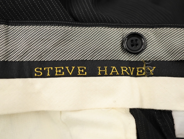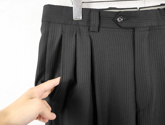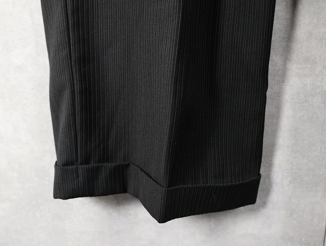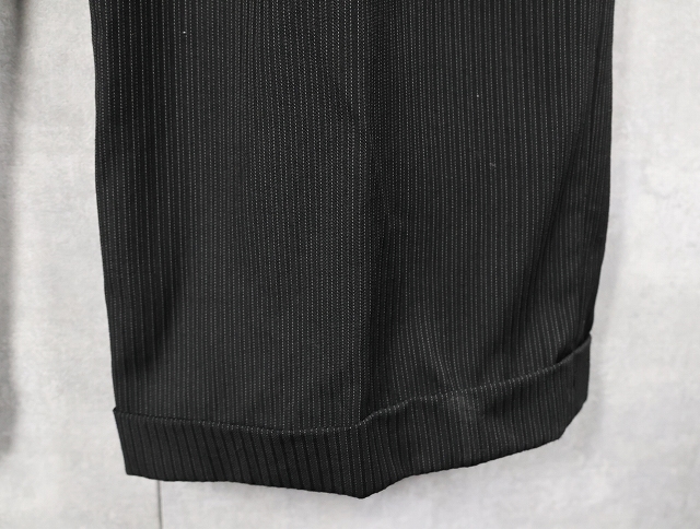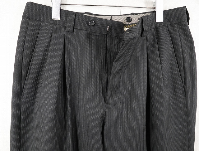 STEVE HARVEY ITALY製 ストライプ柄 2タック ウールスラックス BLACK W34 [159559]