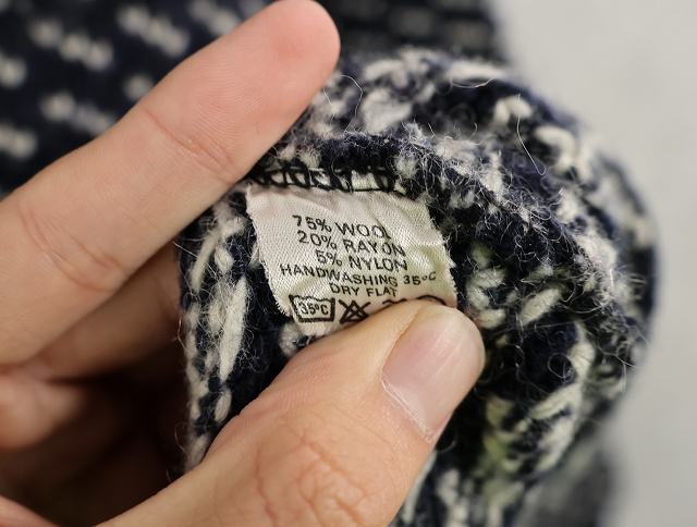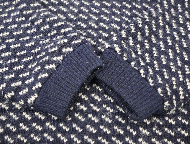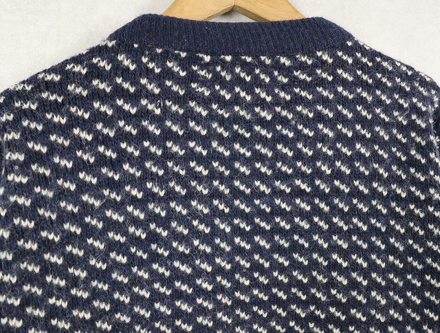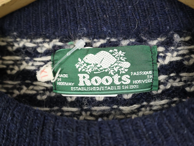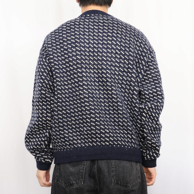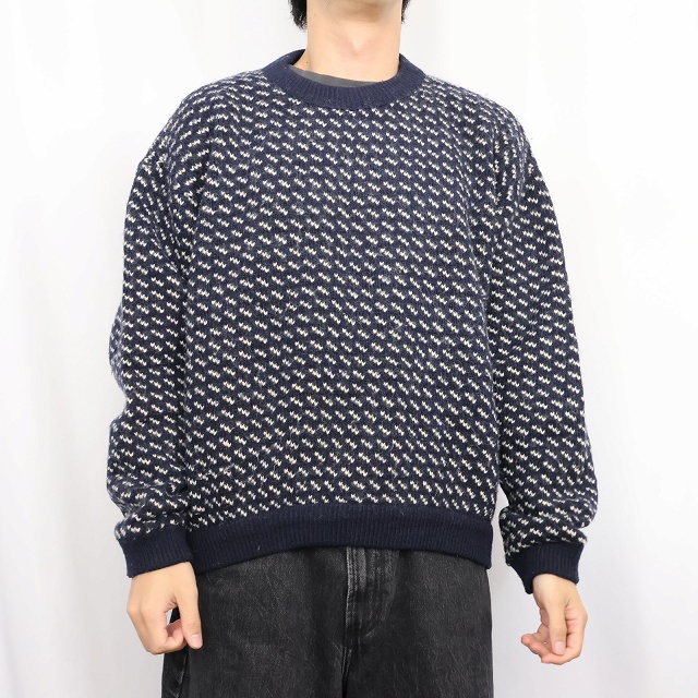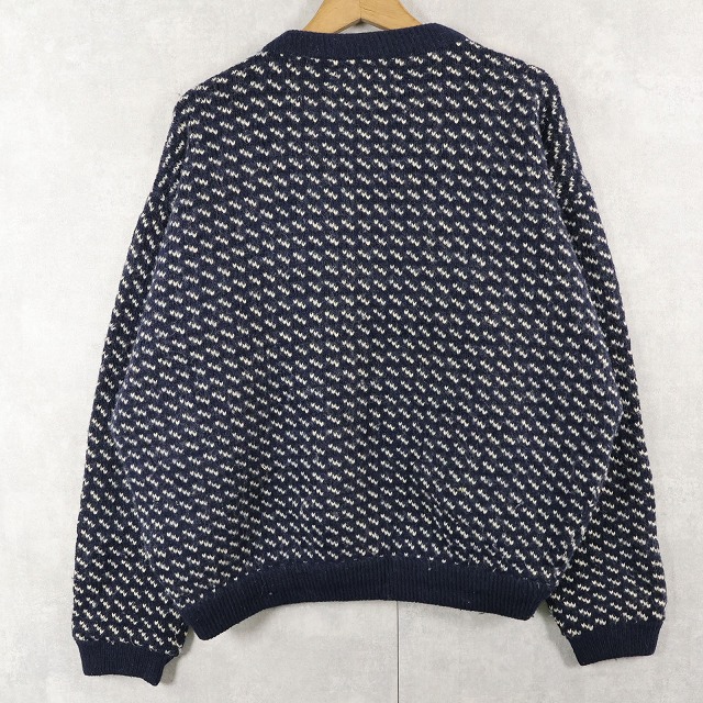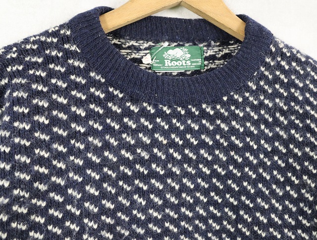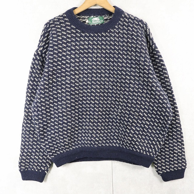 80〜90's Roots バーズアイ柄 ウールニットセーター NAVY XL [159564]
