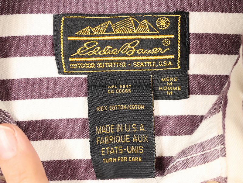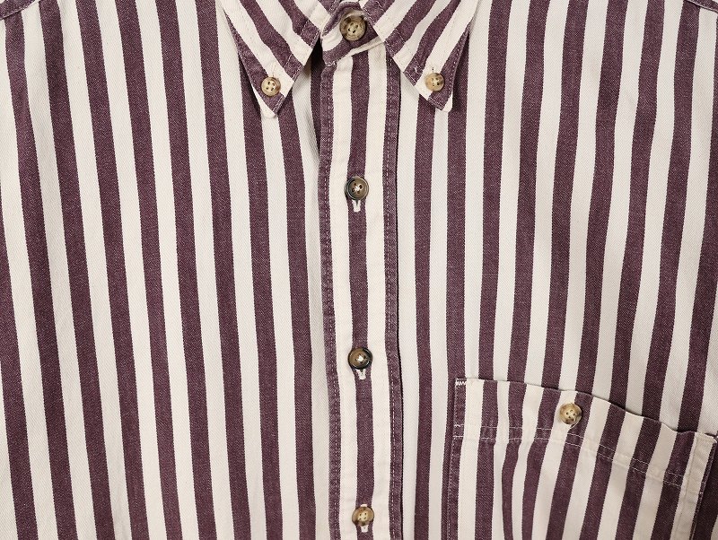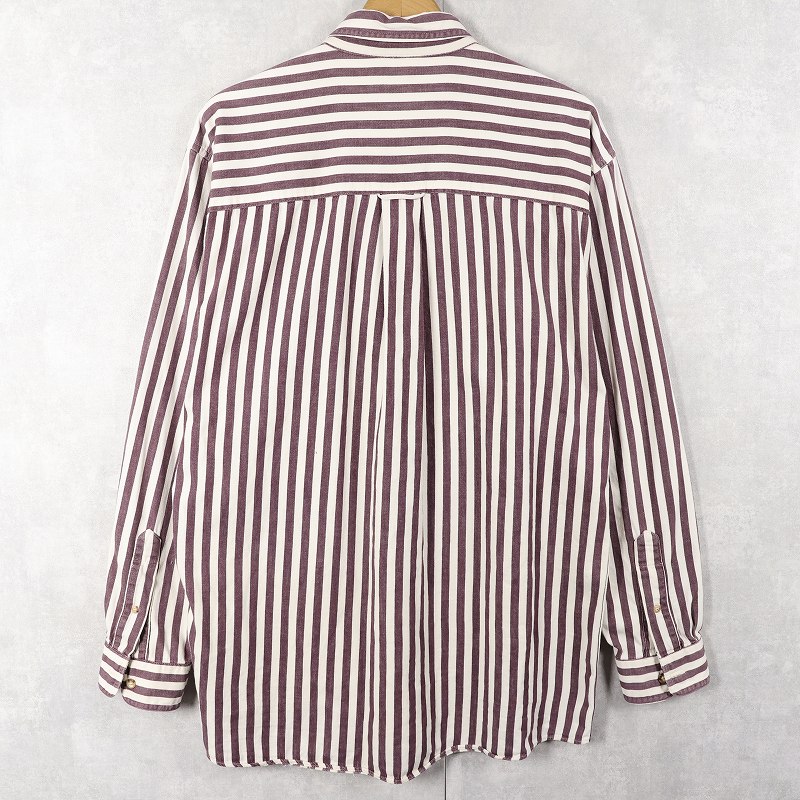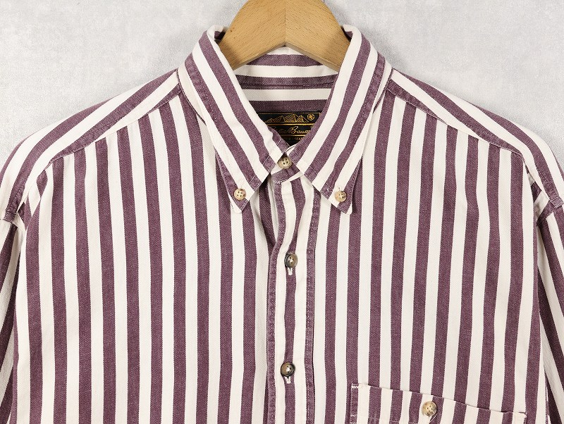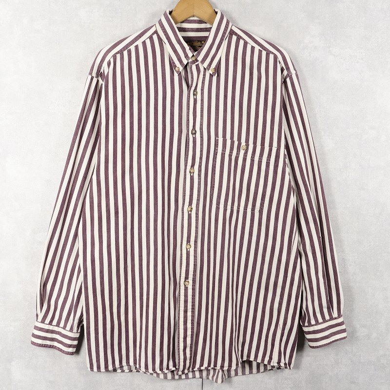 80〜90's Eddie Bauer ストライプ柄 ボタンダウンコットンシャツ M [159610]