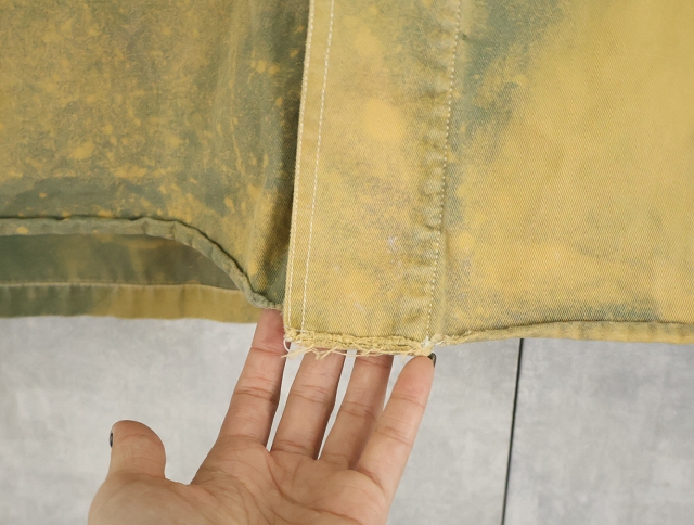 - 汚れやシミ、フロント裾のカットがありますが、とても雰囲気の良い一点です。