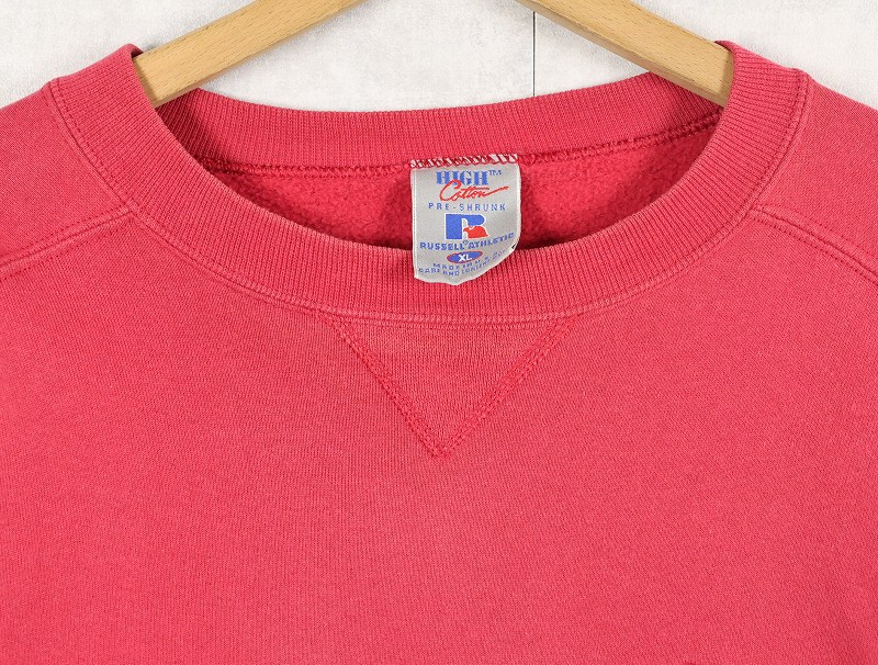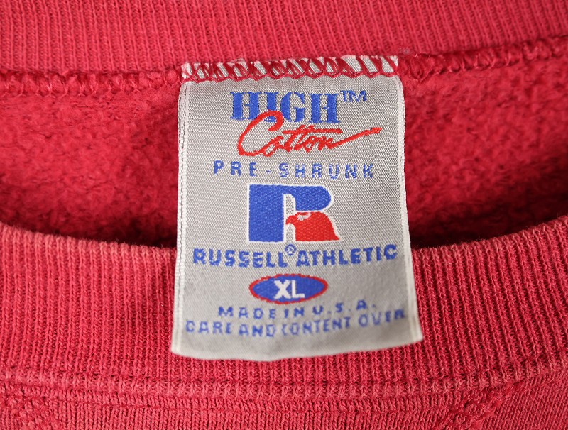 90's RUSSELL ATHLETIC USA製 "HIGH COTTON" ロゴ刺繍 前V スウェット XL [159626]