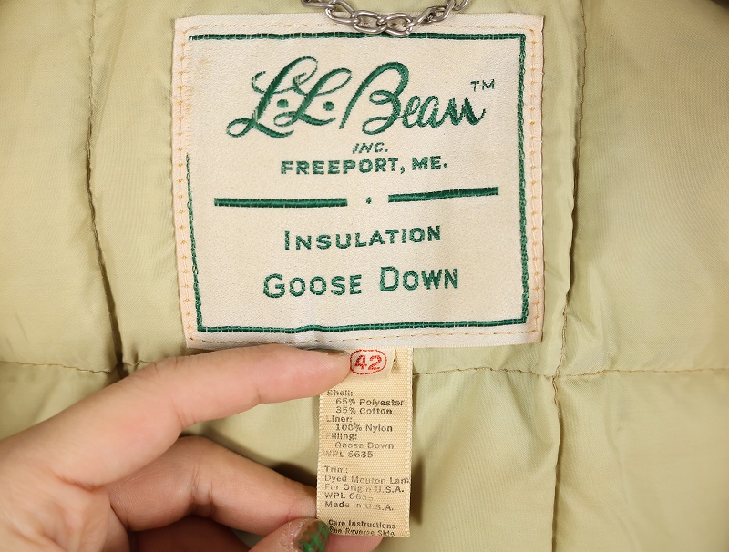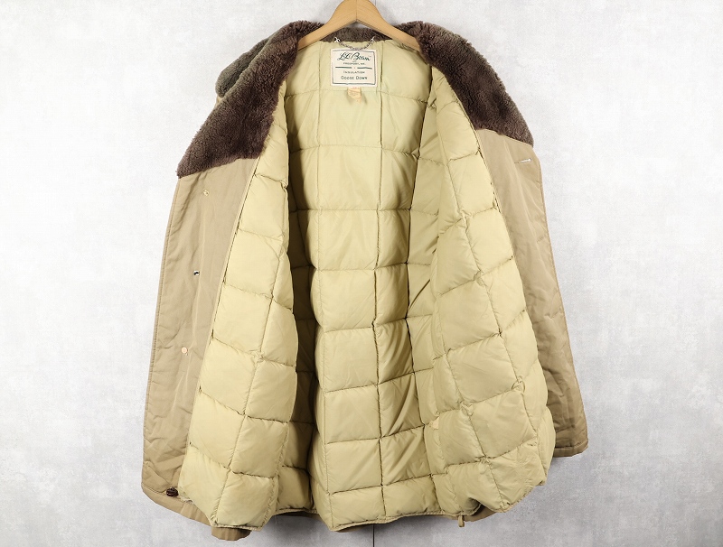 70's L.L.Bean 筆記体タグ USA製 襟ボア グースダウンコート SIZE42 [159639]
