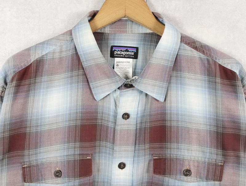 2012AW Patagonia "ORGANIC COTTON" オンブレーチェック柄 コットン×ポリエステルシャツ L [159651]