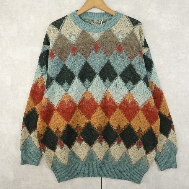90's SUSPENSE ITALY製 アーガイル柄 アルパカウールニットセーター SIZE56 [159655]