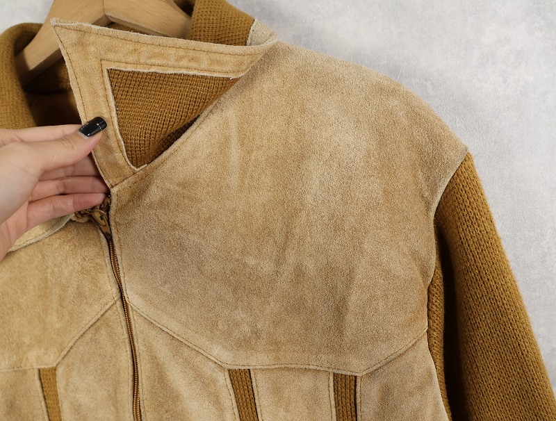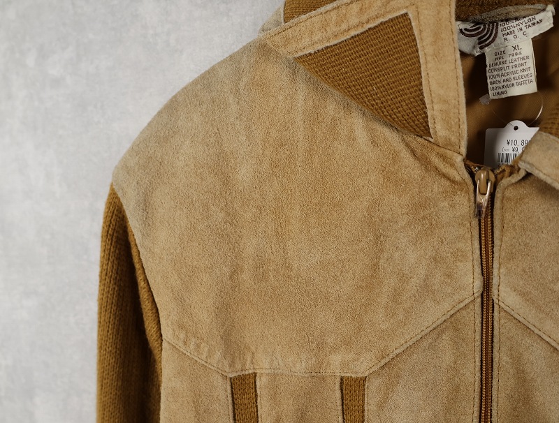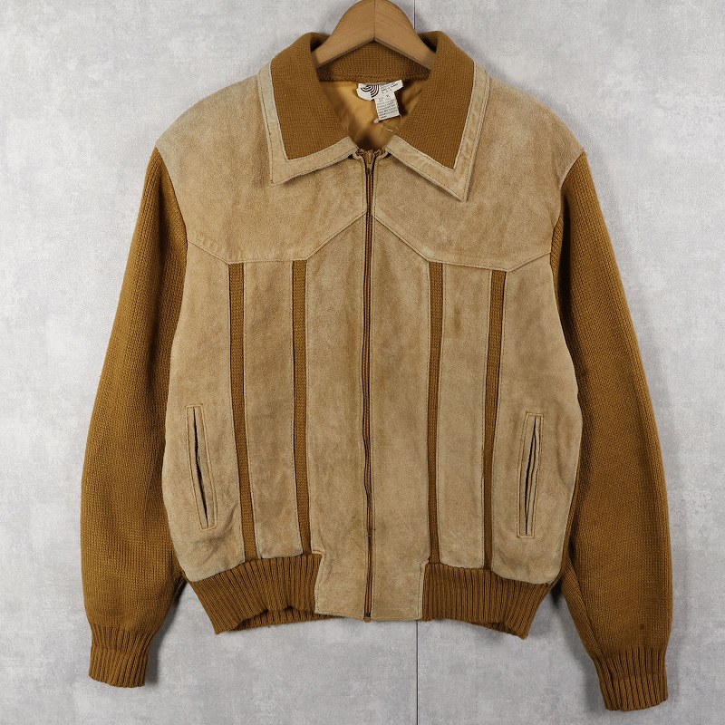 80's〜 SILTON ニット切り替え スエードレザージャケット XL [159675]