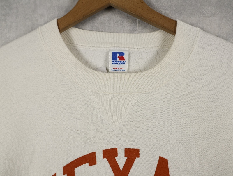 80's RUSSELL ATHLETIC USA製 前V "TEXAS" プリントスウェット L [159687]