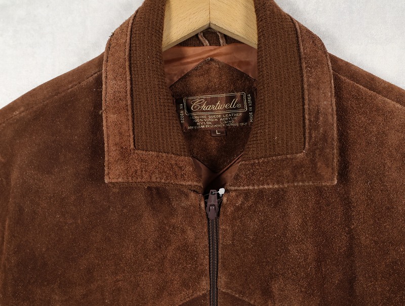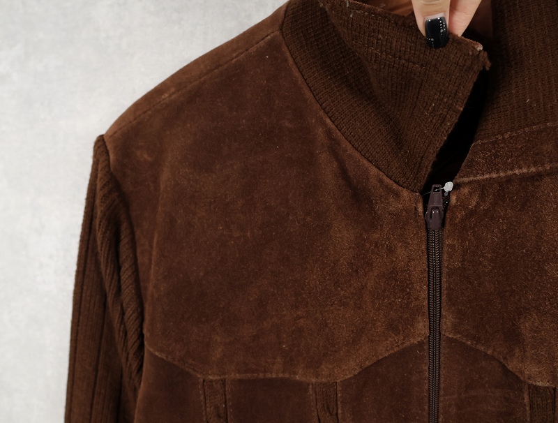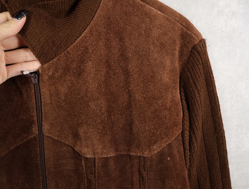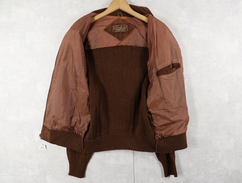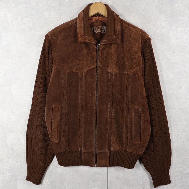 80's〜 Chartwell ニット切り替え スエードレザージャケット L [159688]