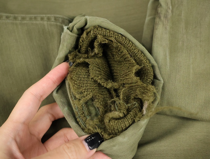 - 色褪せ、汚れ、リブの破れがありますが、雰囲気が出ており、大変かっこいい一点です。