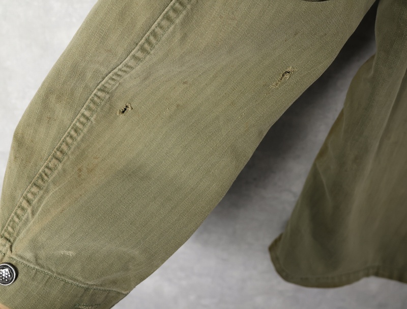 - 色褪せ、シミや黄ばみ、袖口の破れがありますが、雰囲気が出ており、大変かっこいい一点です。