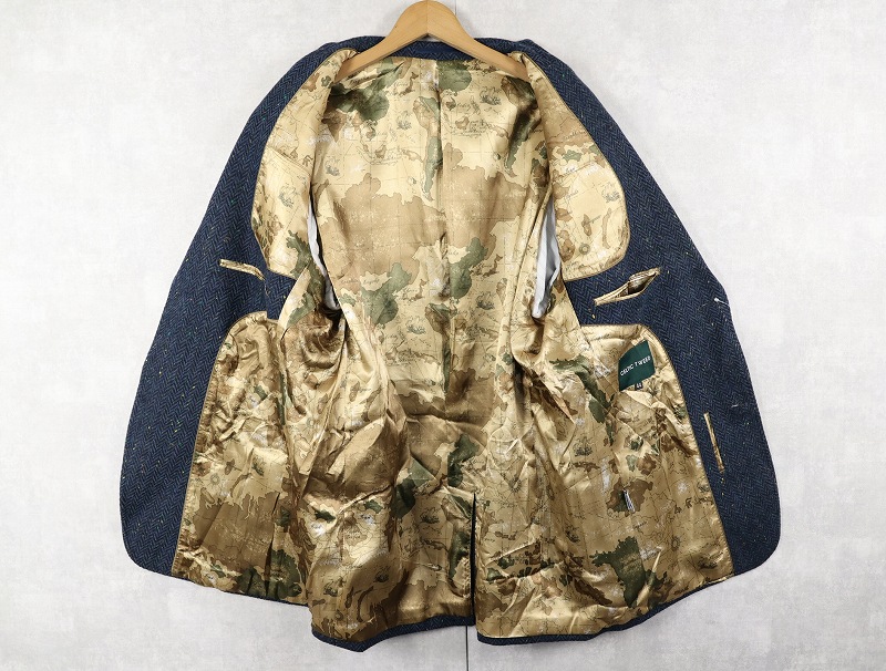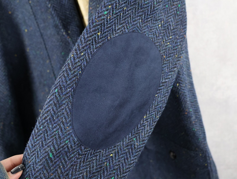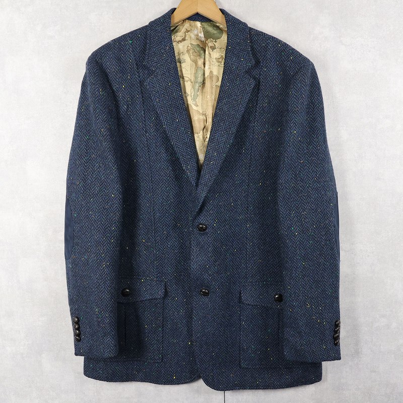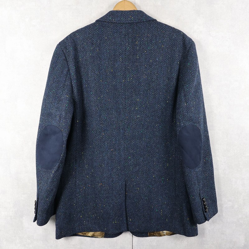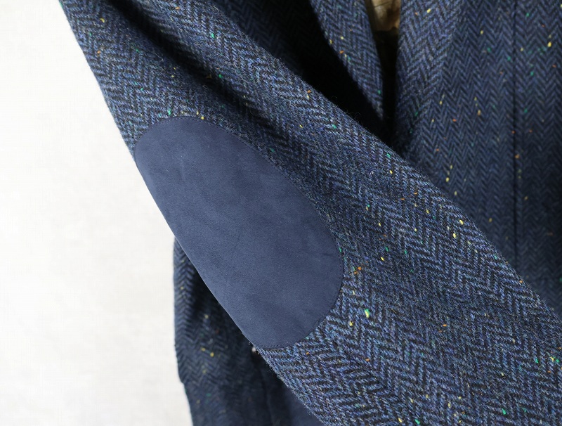 CELTIC TWEED エルボーパッチ付き カラーネップ混 ウールツイードジャケット NAVY SIZE44 [159704]