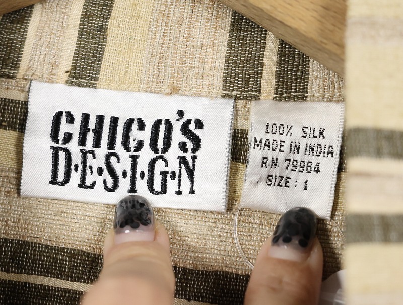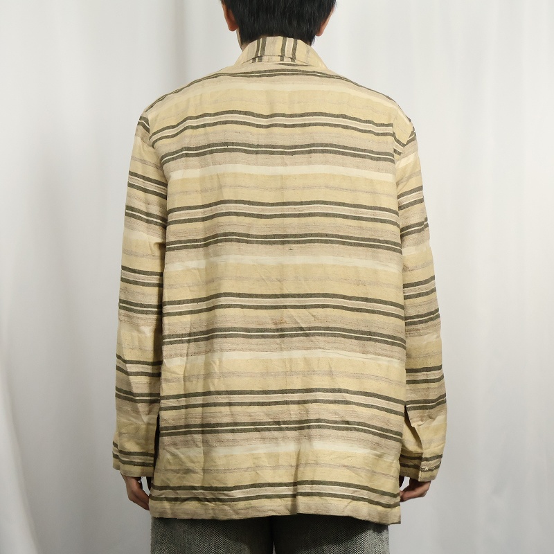 CHICO'S DESIGN マルチボーダー柄 シルクシャツジャケット SIZE1 [159726]