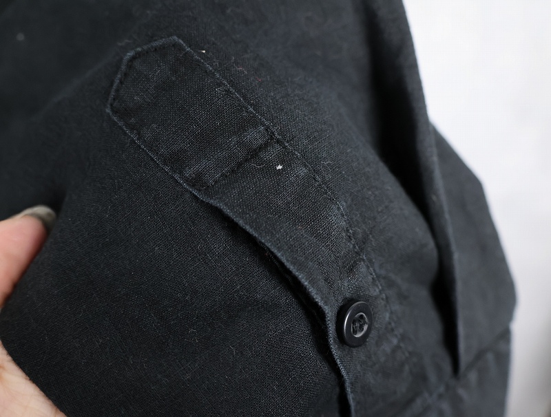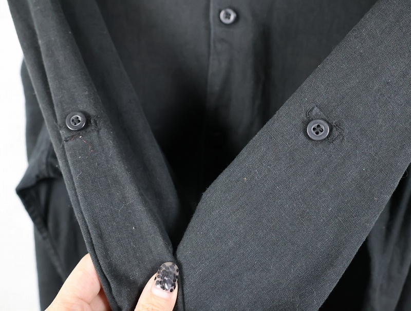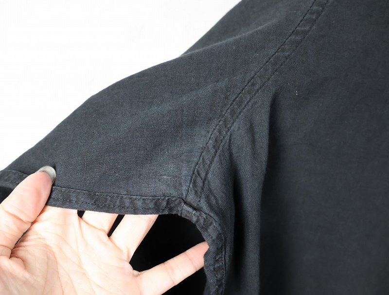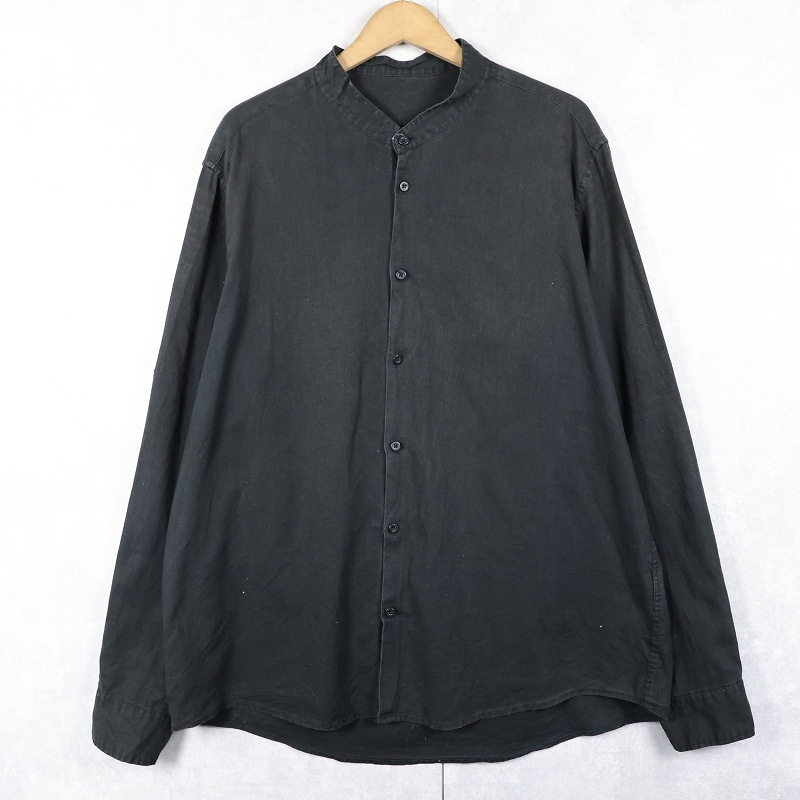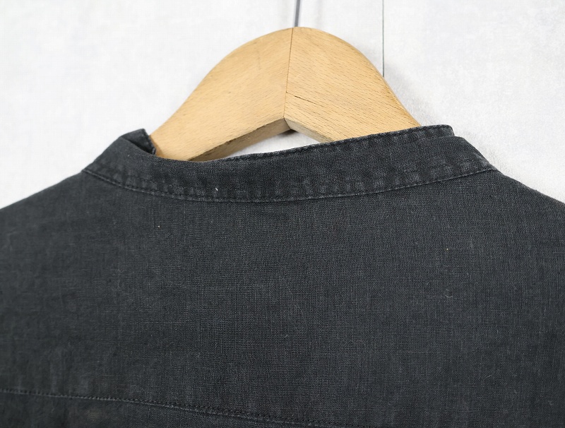 リネンコットン バンドカラーシャツ BLACK [159727]