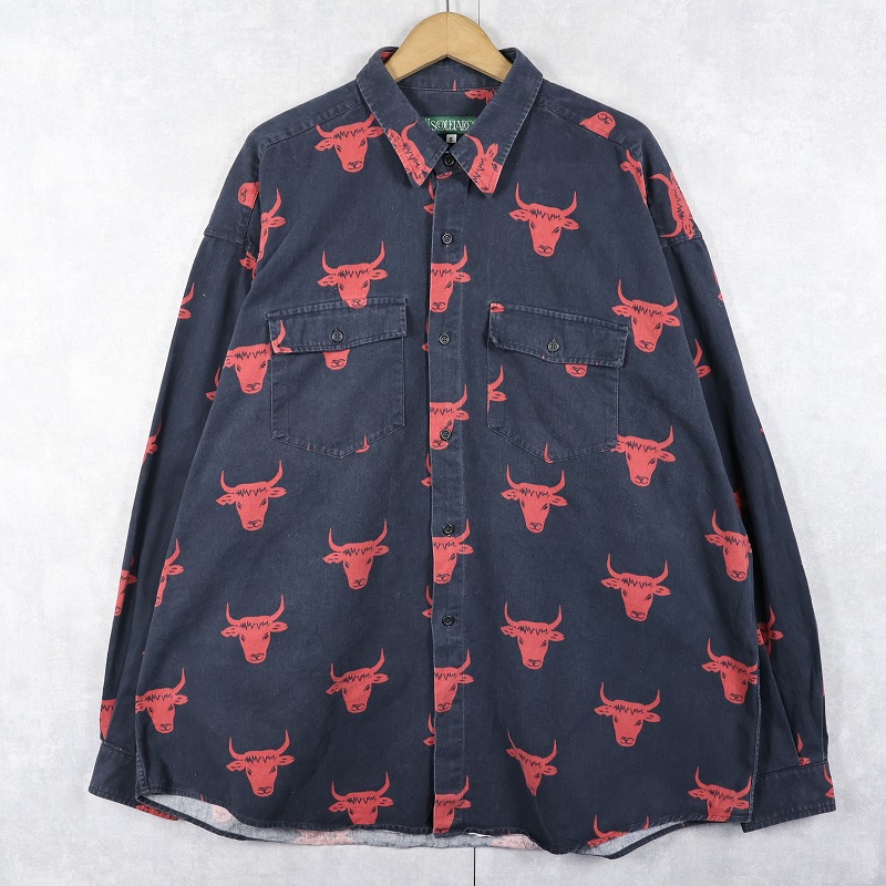 90's〜 SOULEIADO FRANCE製 闘牛柄 コットンシャツ BLACK SIZE6 [159733]
