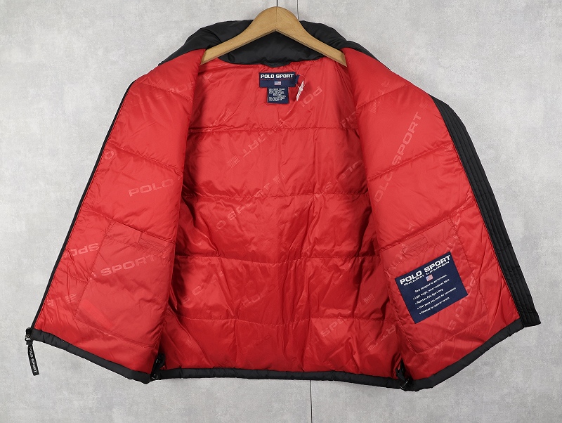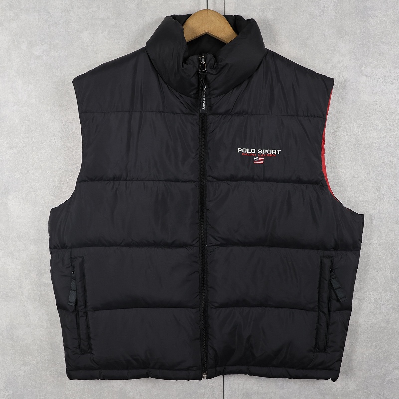 90's POLO SPORT Ralph Lauren ロゴ刺繍 ダウンベスト BLACK L [159744]