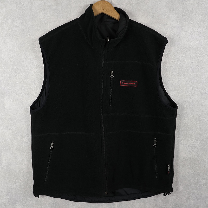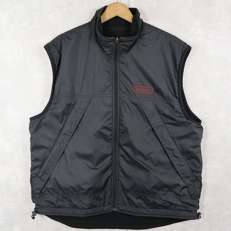 90's POLO SPORT Ralph Lauren 裏フリース リバーシブル ソフトシェルベスト BLACK XL [159746]