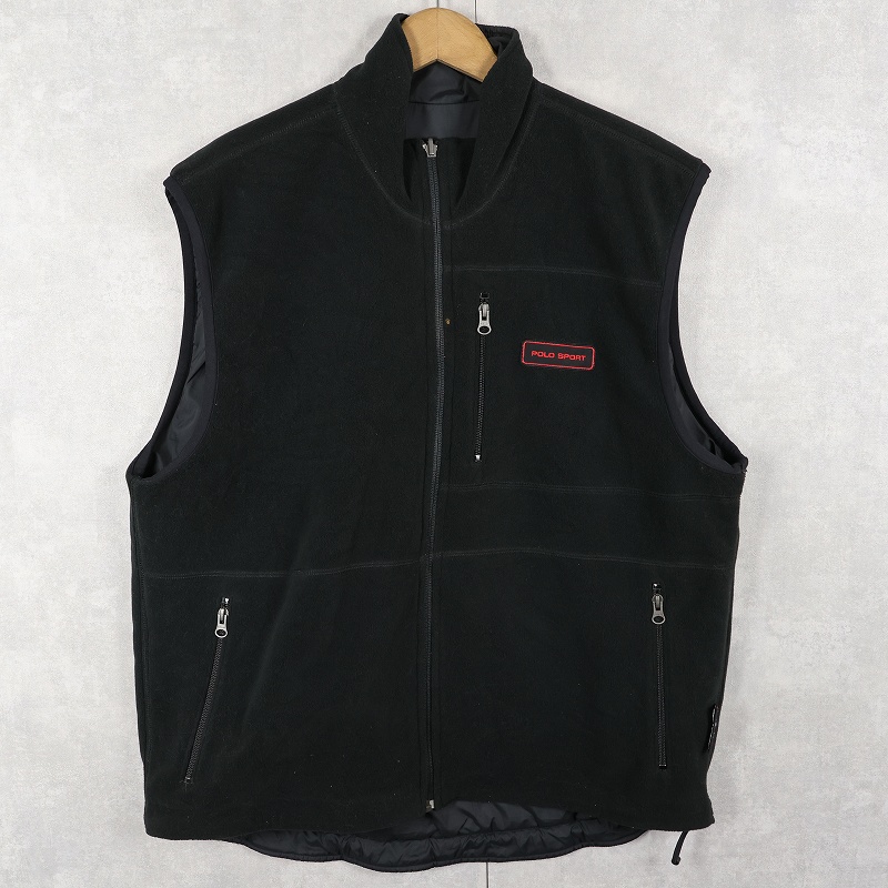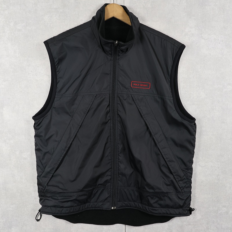 90's POLO SPORT Ralph Lauren 裏フリース リバーシブル ソフトシェルベスト BLACK L [159747]