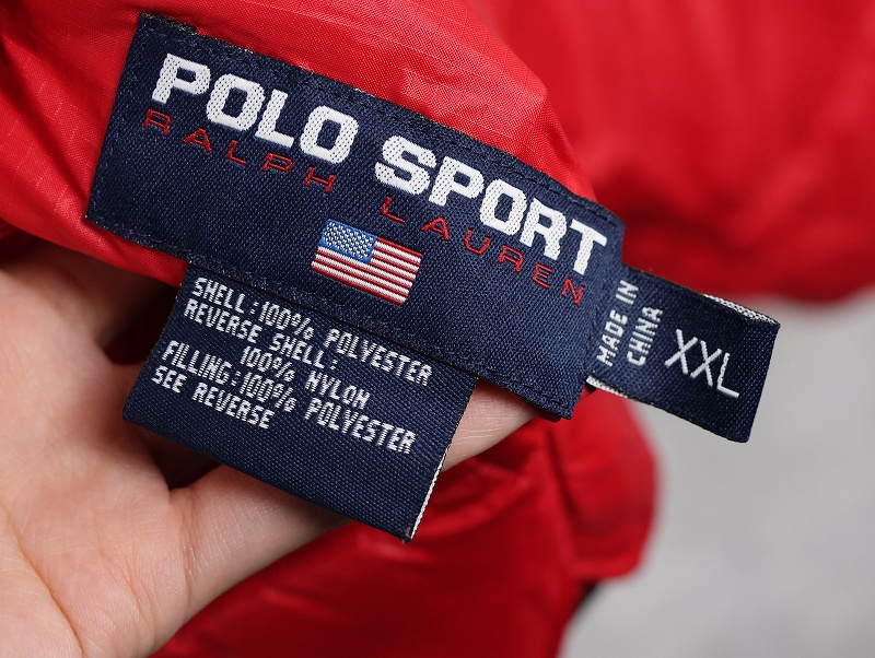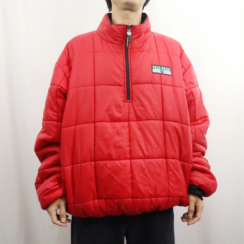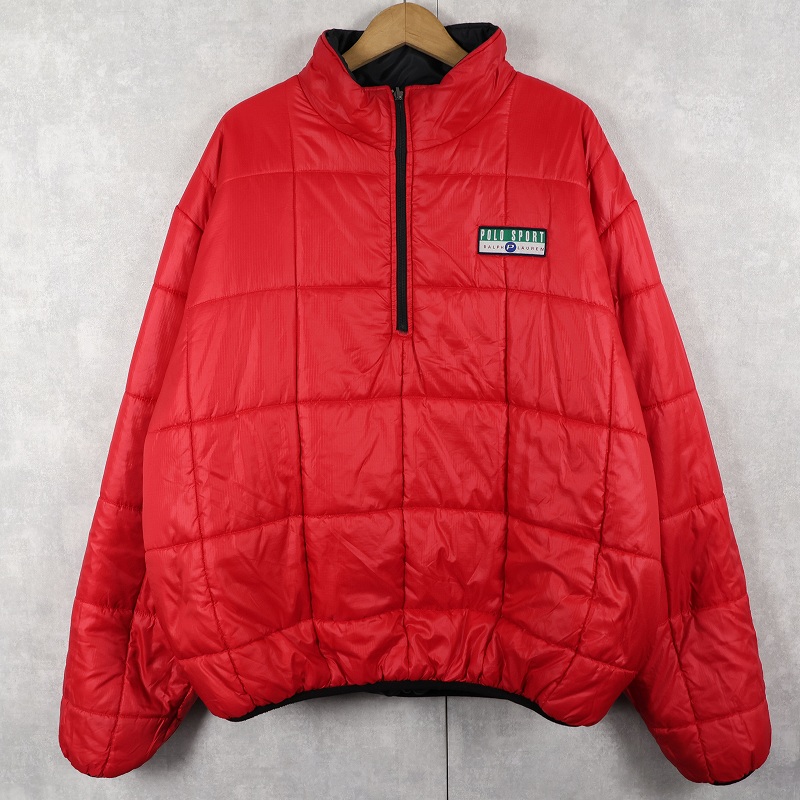 90's POLO SPORT Ralph Lauren ロゴパッチ付き 中綿入り リバーシブルプルオーバージャケット RED×BLACK XXL [159750]