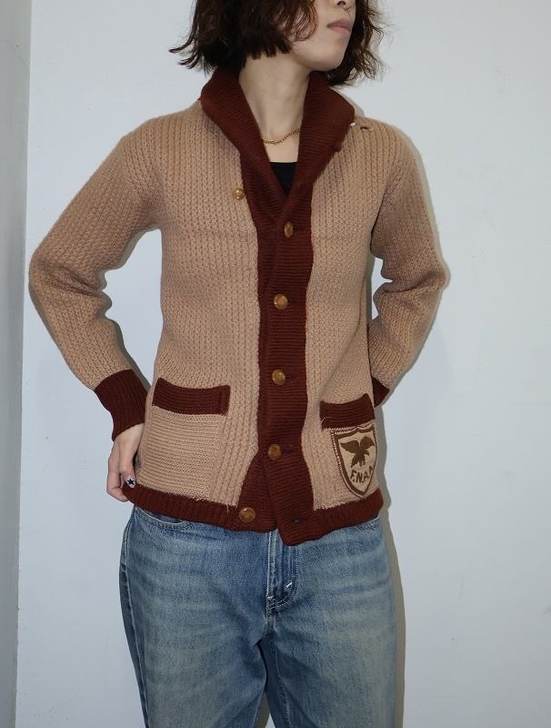 50〜60's IDEAL-KNIT CANADA製 ワッペン付き カウチンニットカーディガン YOUTH SIZE [159770]