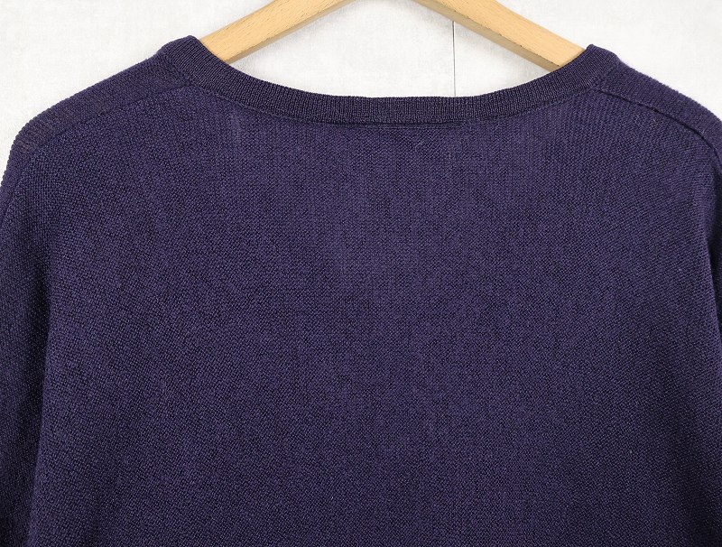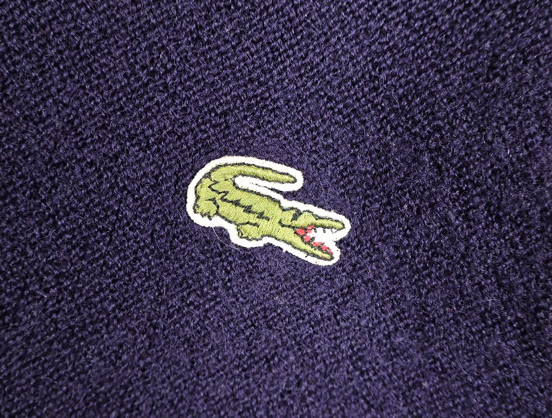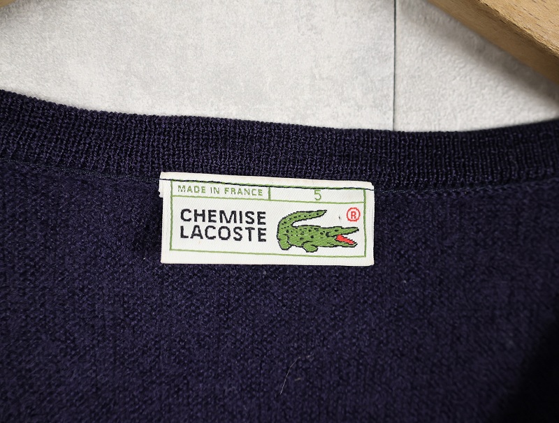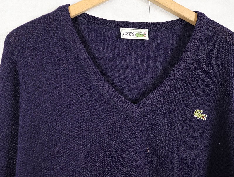 70's CHEMISE LACOSTE FRANCE製 ロゴ刺繍 Vネック アクリルニットセーター NAVY SIZE5 [159811]