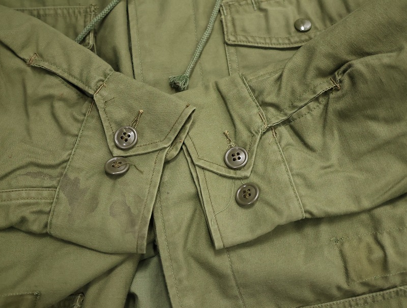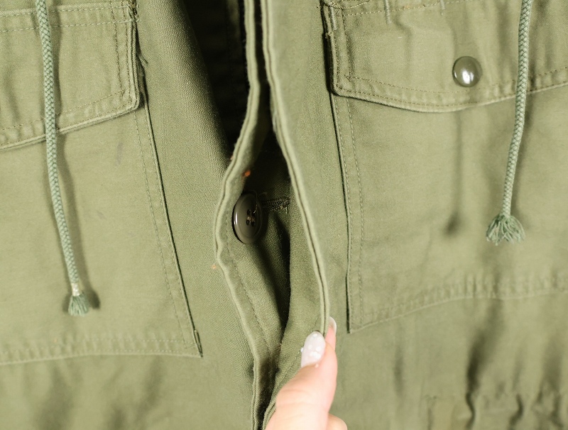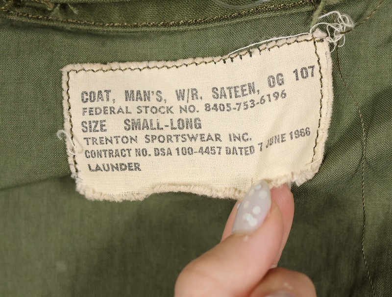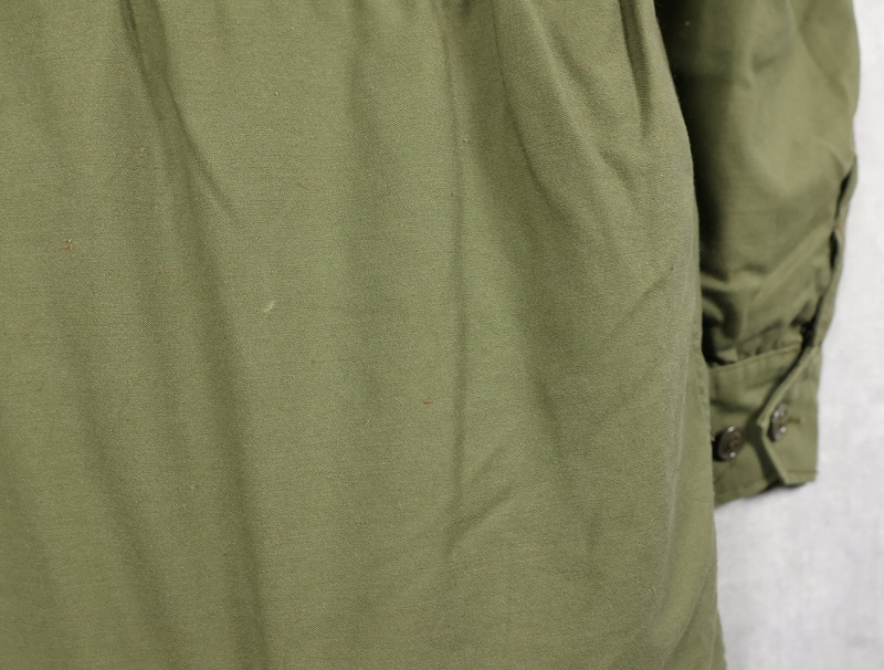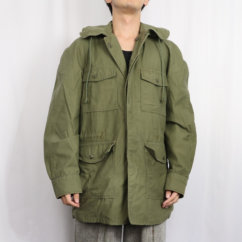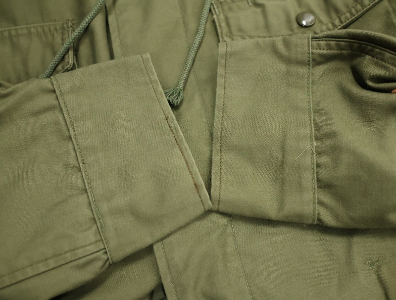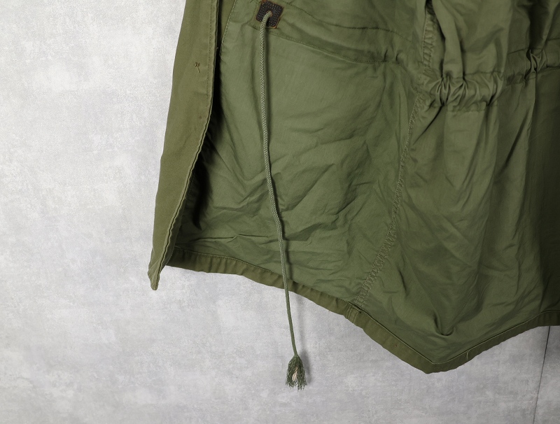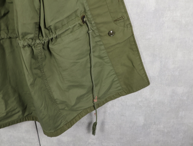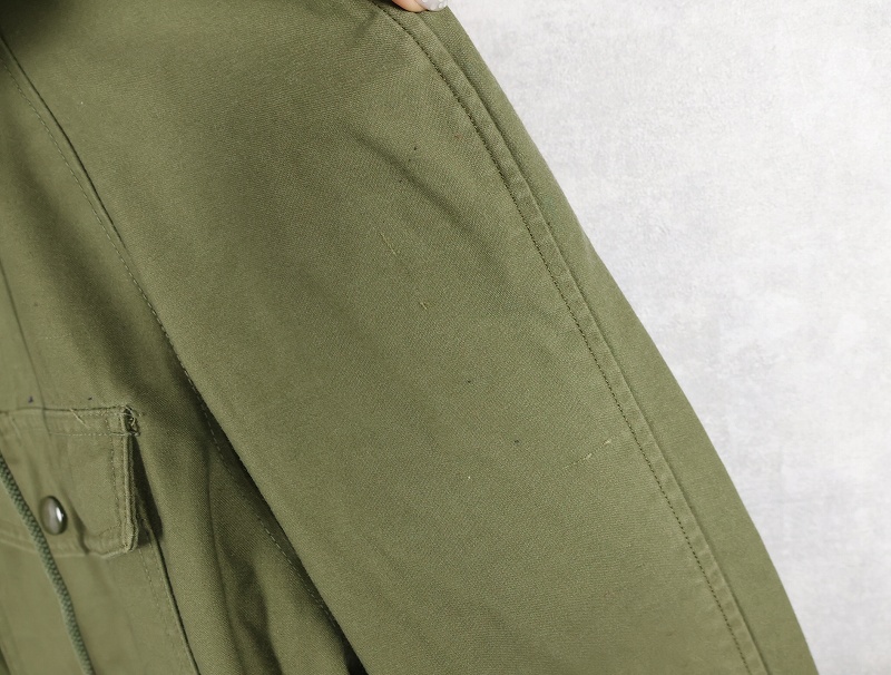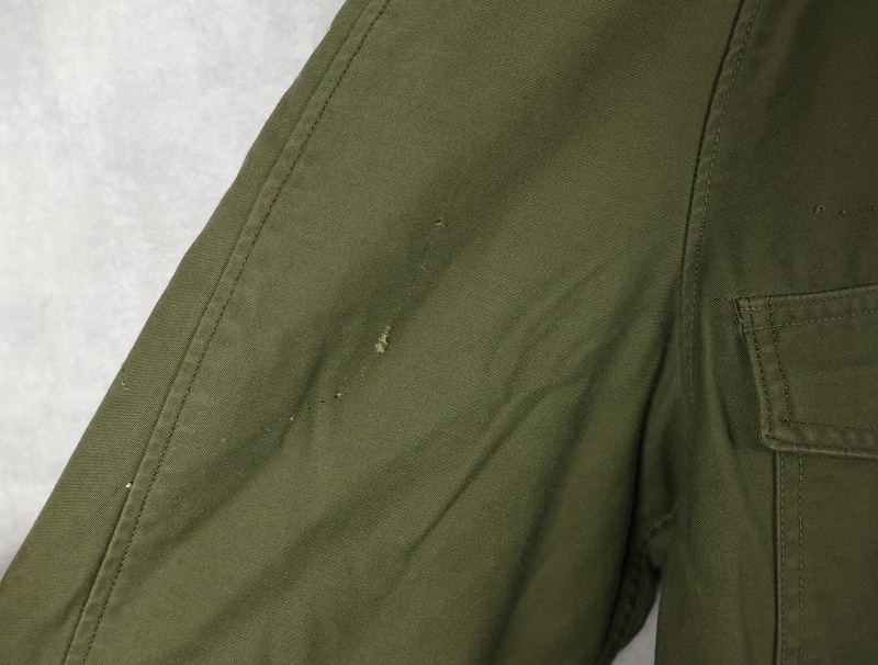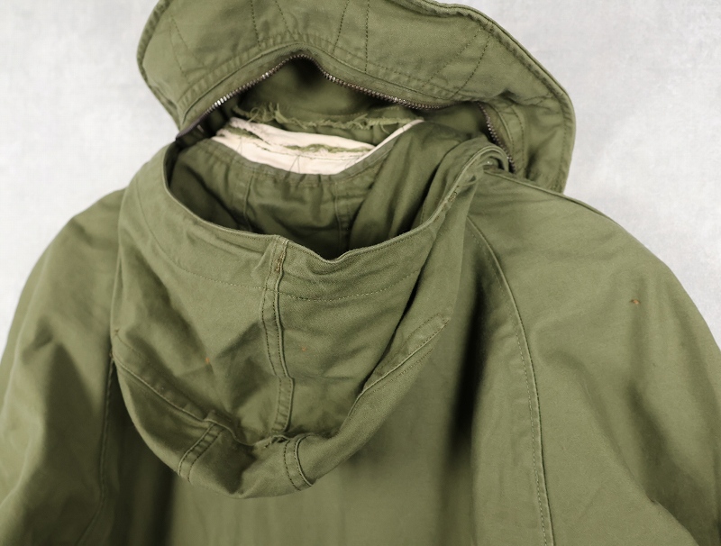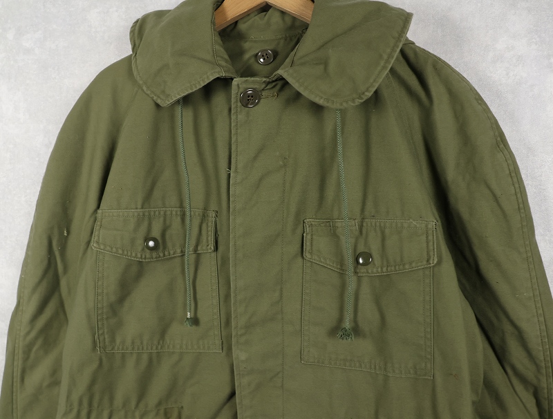 1950年代から1965年頃までという短期間のみ採用されたアイテム。襟の内側にフードが収納できる仕様になっており、丸まったシルエットが牛の耳に似ているので「キャトルジャケット」と呼ばれるようになりました。 前期のセージグリーンから後期はOJ-107に変更となります。