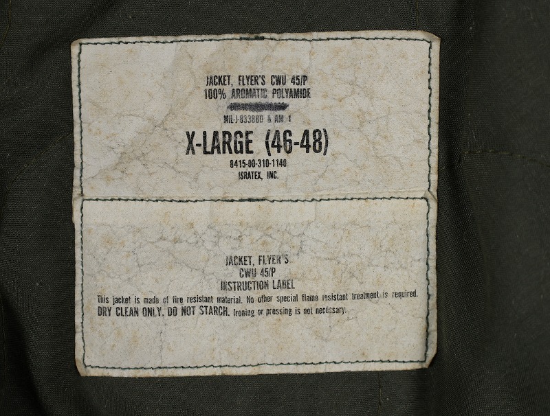 80〜90's U.S.AIR FORCE CWU-45/P パッチ付き フライトジャケット X-LARGE [159822]